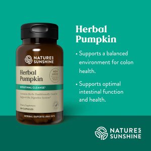 Harvest a bushel of gut health benefits Herbal Pumpkin formula supports colon and digestive health and helps create a balanced microbiome. This innovative, plant-based formula includes only non-GMO-verified, Kosher-certified botanicals.