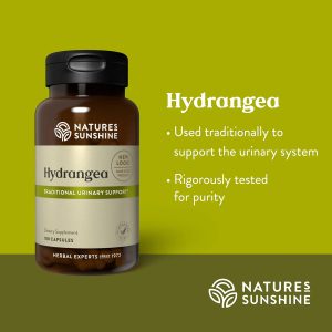 Not just another pretty face The root from one member of this stunningly colorful shrubs family offers support for the urinary system . Early American settlers learned about wild hydrangea root from the Cherokee Indians who used it for kidney support . Our hydrangea grows in the eastern US and is non-GMO, and free from pesticides and heavy metals.