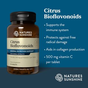 Vitamin C is a busy nutrient It assists the immune system, helps maintain skin integrity with collagen, is needed for iron absorption and helps in the creation of enzymes, hormones and proteins. Plus it works with bioflavonoids to help protect your body from damaging free radicals.