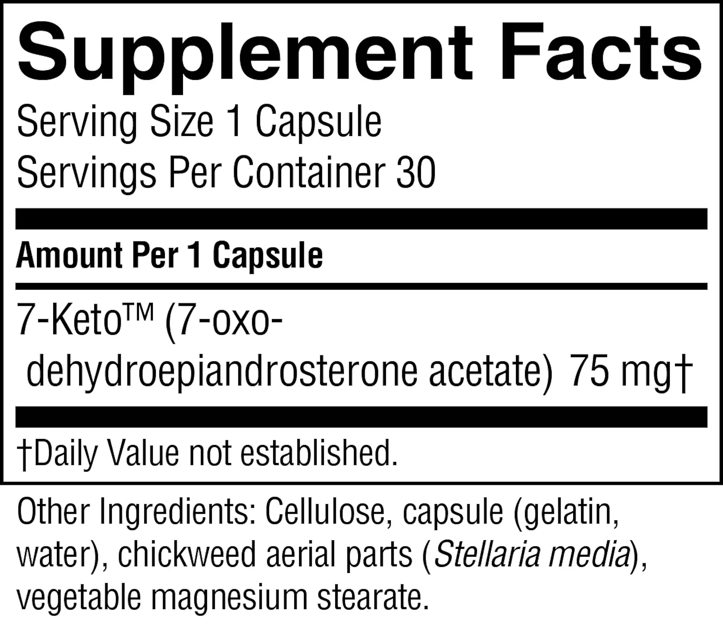 7-Keto and chickweed leaf extract. 7-Keto is a trademark of Humanetics Corp., Patent no. 5,296,481