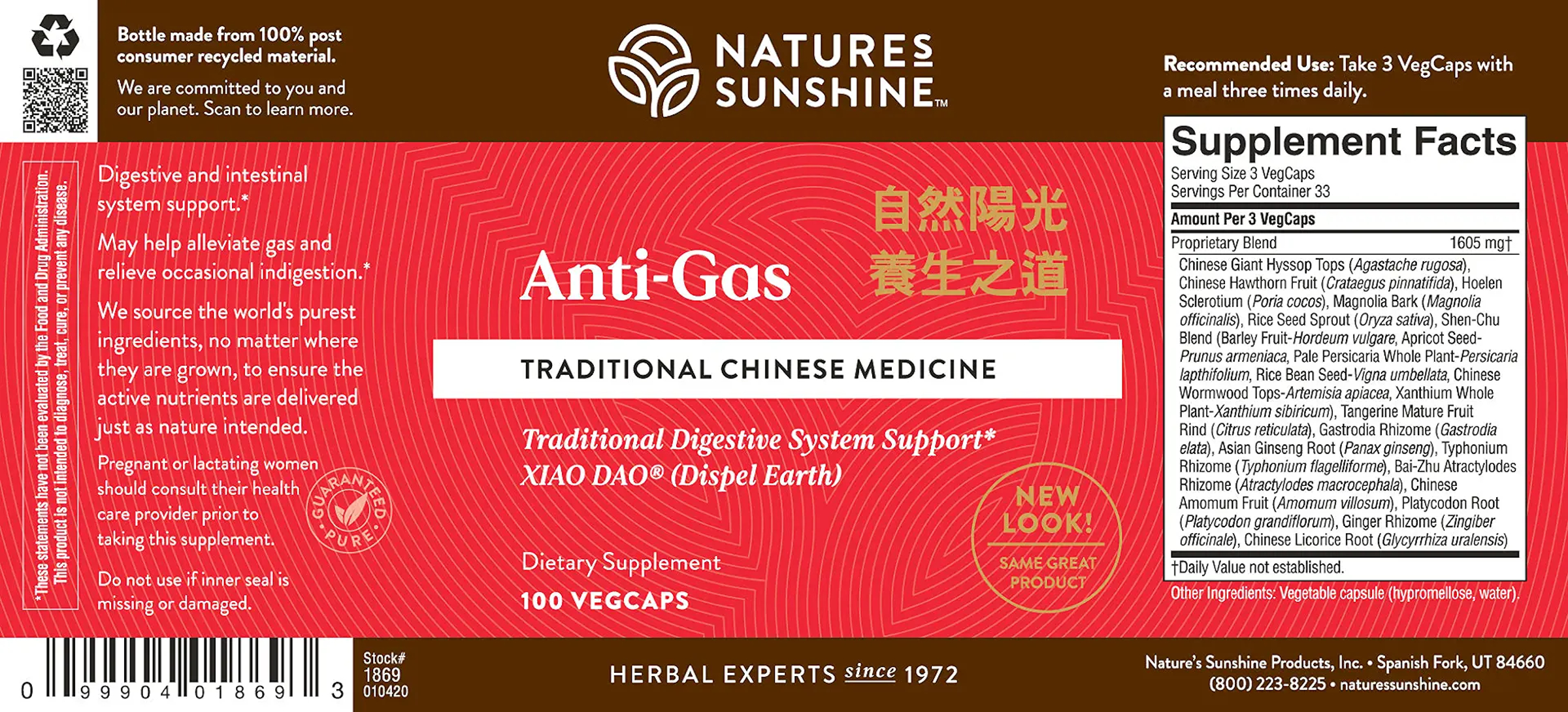 According to Eastern philosophy, life permits us to work with what we have on earth here and now—body and mind—in order to reclaim and maintain the innate energy and spirit that reside within us. Energy and spirit must be awakened, nurtured and balanced in order for life to flourish. TCM philosophy names five distinct energies that permeate the body:Fire, Earth, Metal, Water and Wood. In order to feel your best, these energies must be in balance. Your earth element is extremely important as it touches upon your spleen, pancreas and stomach. Digestion and good gut composition are crucial to feeling well. To address your Earth, try Anti-Gas (+),it is considered “earth reducing” in Chinese herbology. Its Chinese name xiao dao can be translated as “clear the congestion.” Under Chinese philosophy, this formula is designed to move energy (chi) to the head and support the natural elimination of excess moisture and toxins. Its primary herbs include agastache, crataegus fruit, hoelen and gastrodia.