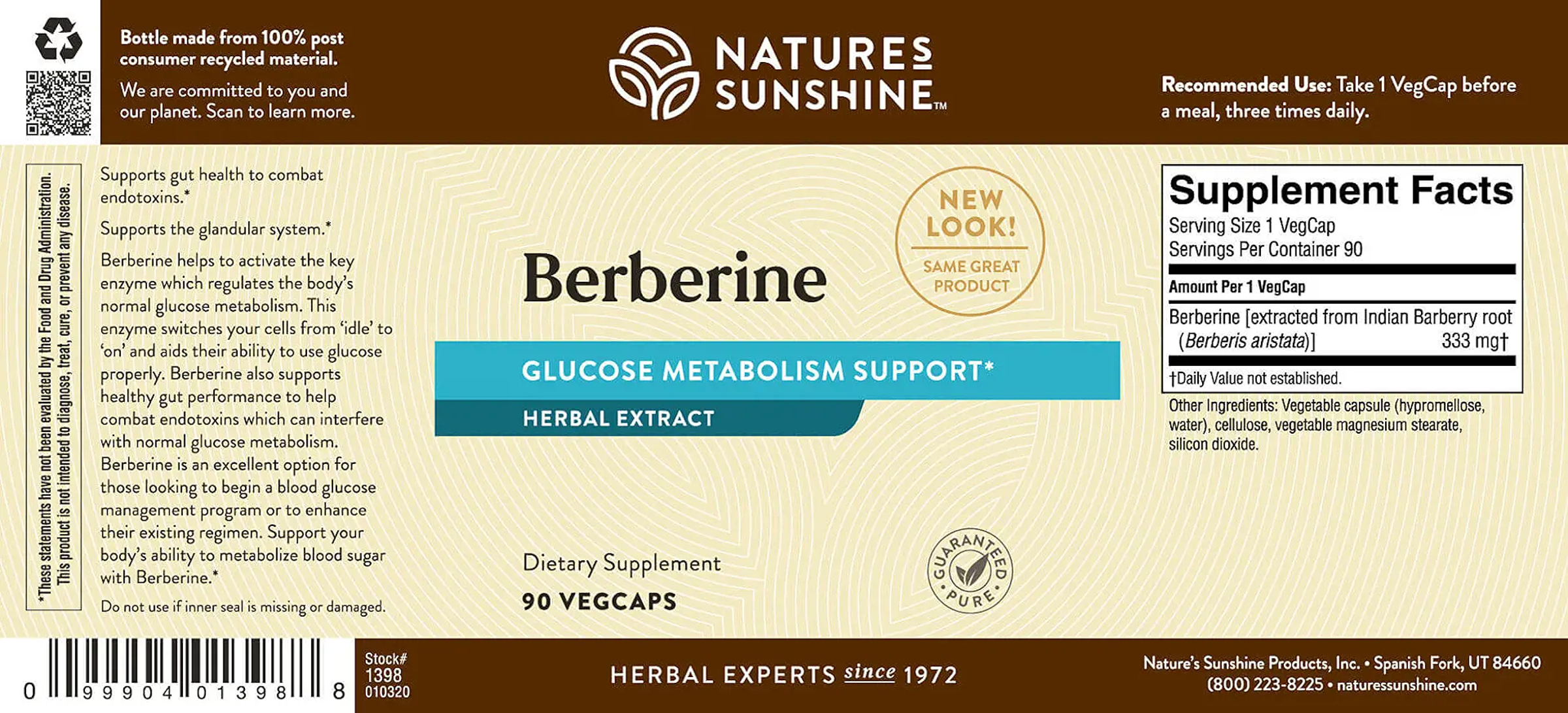 Glucose Metabolism Support Berberine naturally supports healthy blood glucose levels by up-regulating enzymes that trigger blood glucose metabolism. Utilizing a time-honored ingredient found in both Traditional Chinese and Ayurvedic formulas, Berberine works to support blood sugar balance and glucose metabolism through a unique cellular action. Berberine, a constituent of certain plants, helps activate a key enzyme that supports blood glucose metabolism, turning your cells from “idle” to “on” and helping them to use glucose efficiently. Additionally, Berberine supports healthy gut performance to help combat endotoxins. High-carbohydrate diets change the microflora of the gut, increasing bacteria that produce endotoxins. These endotoxins are released into the bloodstream and interfere with normal glucose metabolism. Berberine specifically supports gut health by inhibiting the ability of endotoxins to bind to muscle cells, thus helping to support proper glucose metabolism function. Its unique mechanism of action makes Berberine an excellent option for those who wish to start or strengthen their glucose management regimen. Support your body’s ability to metabolize blood glucose with Berberine.