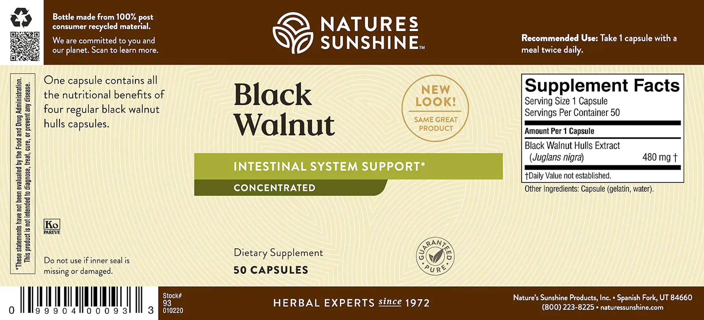 The ancient Greeks used the hulls of black walnut to support the intestinal system and the skin. Herbalists classify black walnut as an astringent because it is rich in tannins, which have toning properties. Black walnut also contains bitter compounds. Through the ages, it has proven to be an effective yet gentle support to the intestinal system.