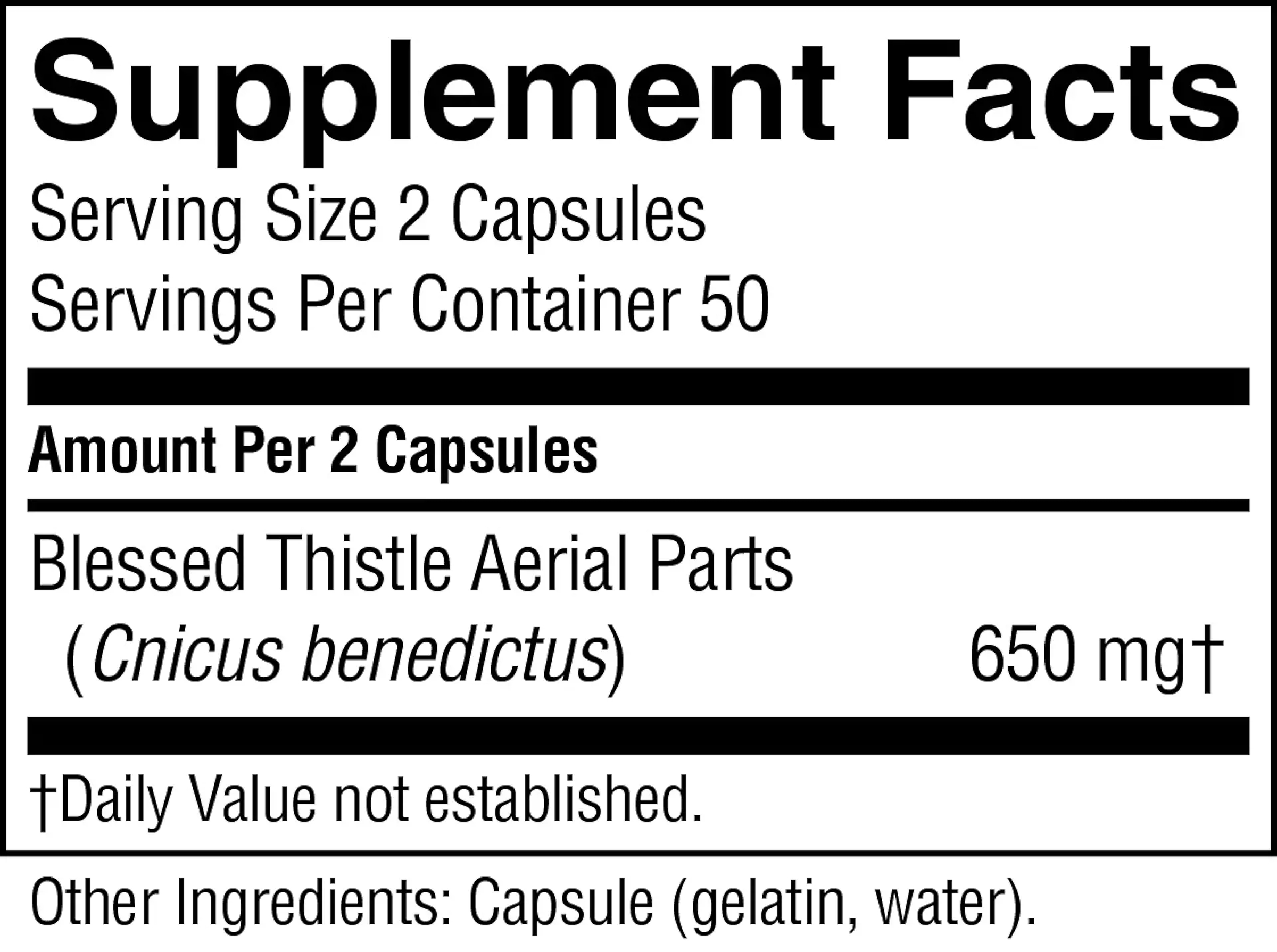 Blessed thistle has been traditionally used to support digestion by stimulating secretions of gastric juices and saliva, and stimulating the flow of bile.