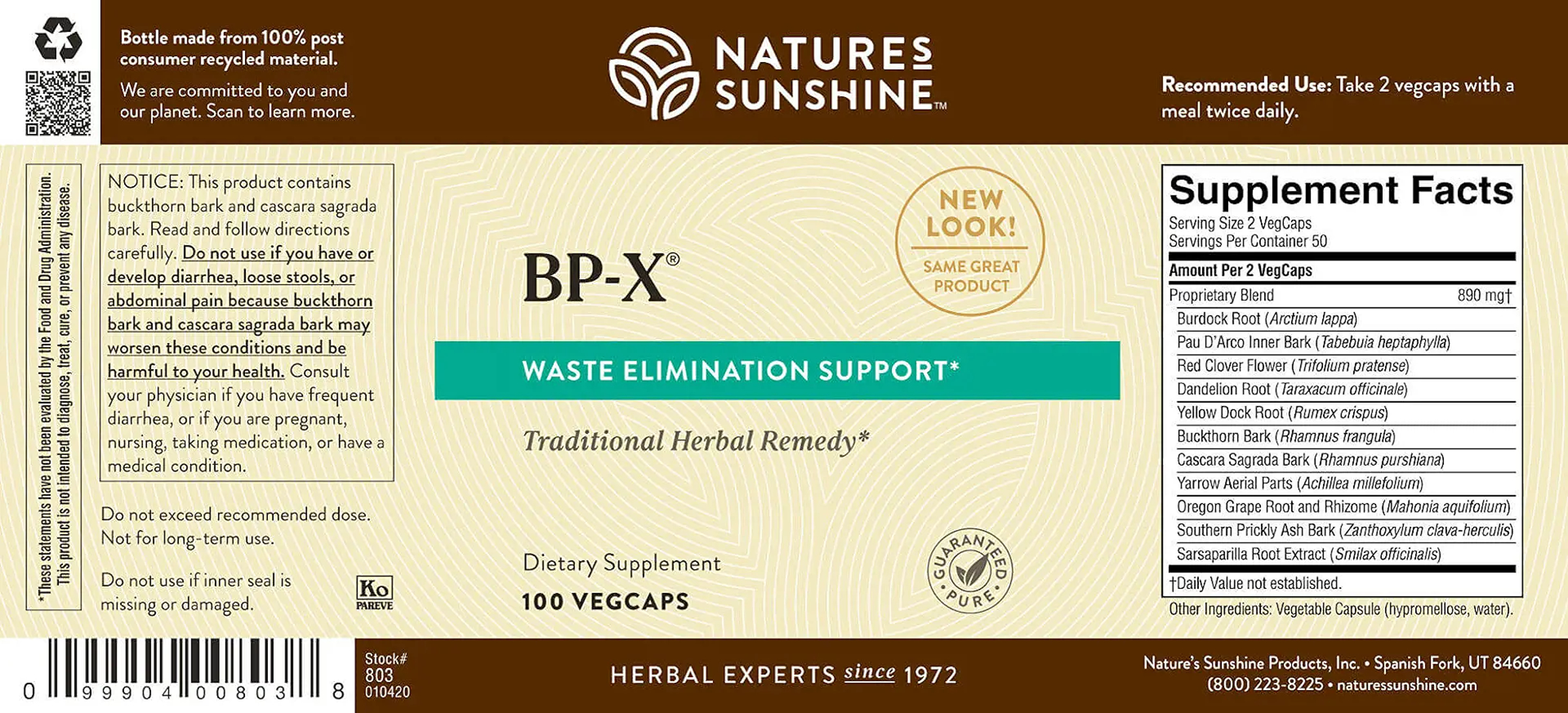 BP-X® supplies botanicals that support the elimination of waste, along with herbal ingredients that have been used traditionally to support organ systems.