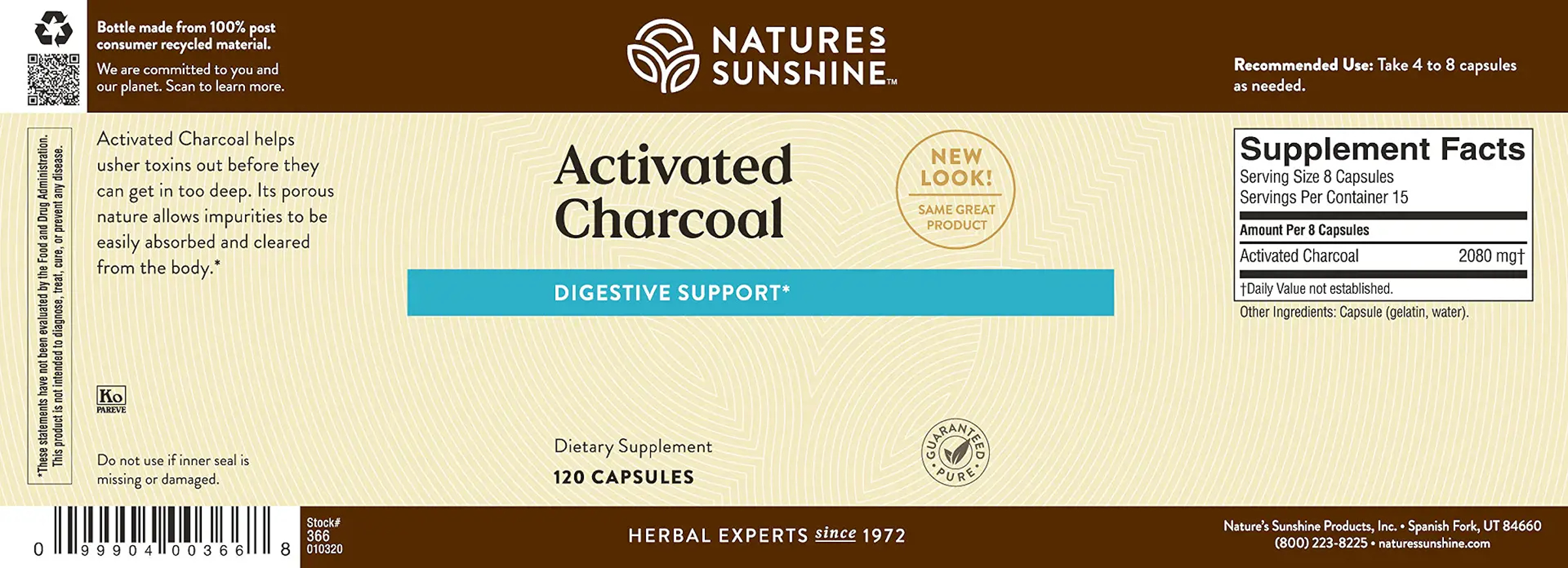 Activated Charcoal is highly adsorbent. It is used to support the body’s cleansing and detoxification mechanisms as it helps bind toxins in the digestive tract. It may also help the body’s efforts to expel intestinal gas. Activated Charcoal has been used safely for ages.