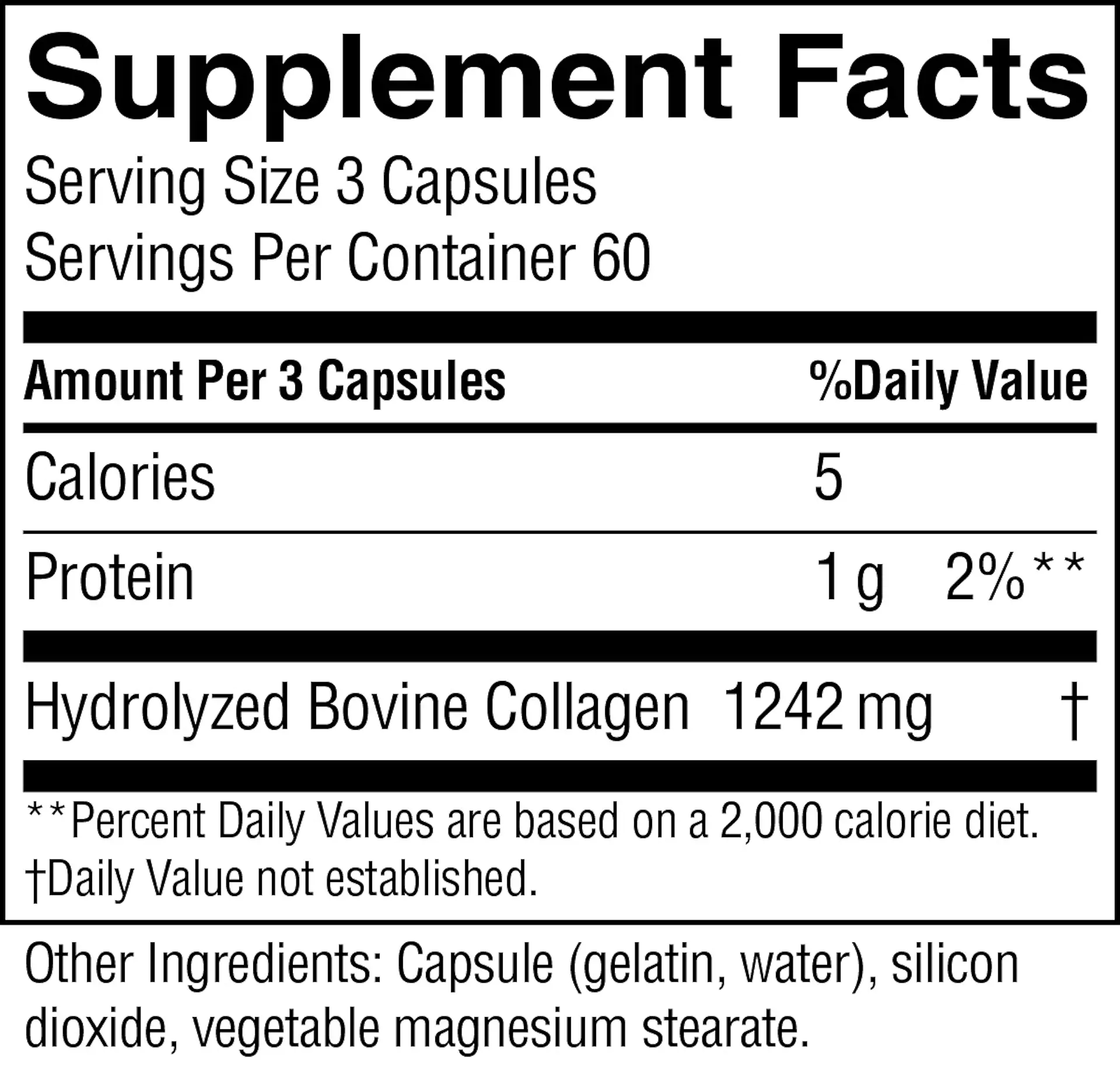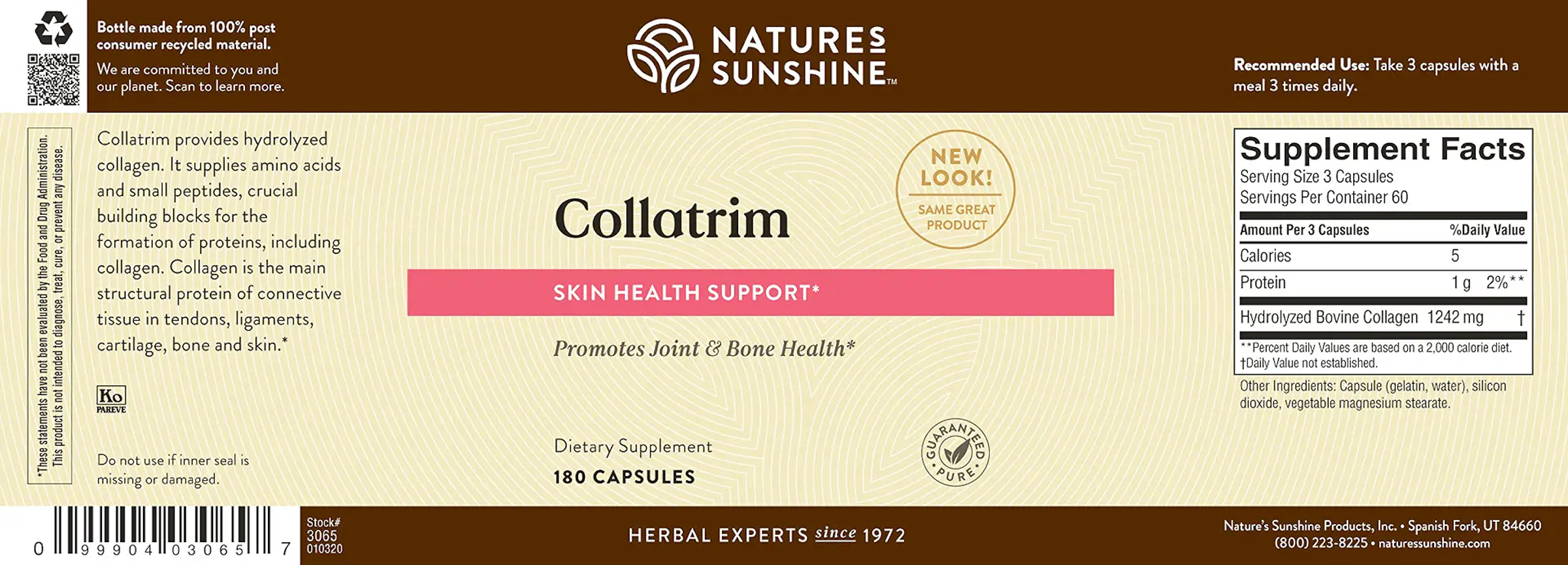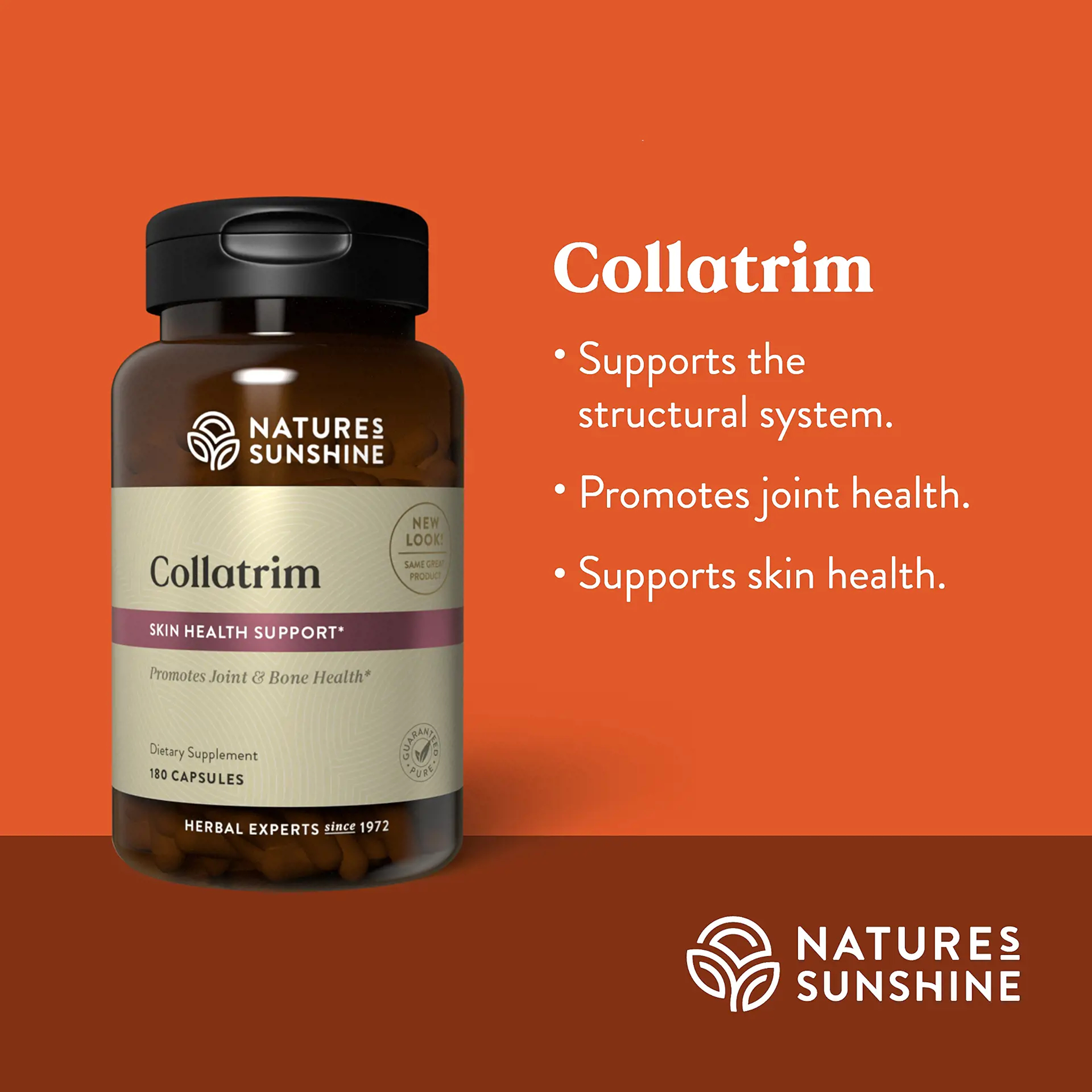 Collatrim provides hydrolyzed collagen. It supplies amino acids and small peptides, crucial building blocks for the formation of proteins including collagen. Collagen is the main structural protein of connective tissue in tendons, ligaments, cartilage, bone and skin.