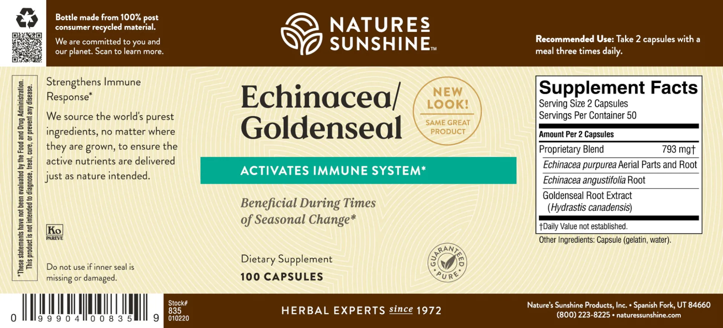 - Features non-GM O verified echinacea and golden seal root