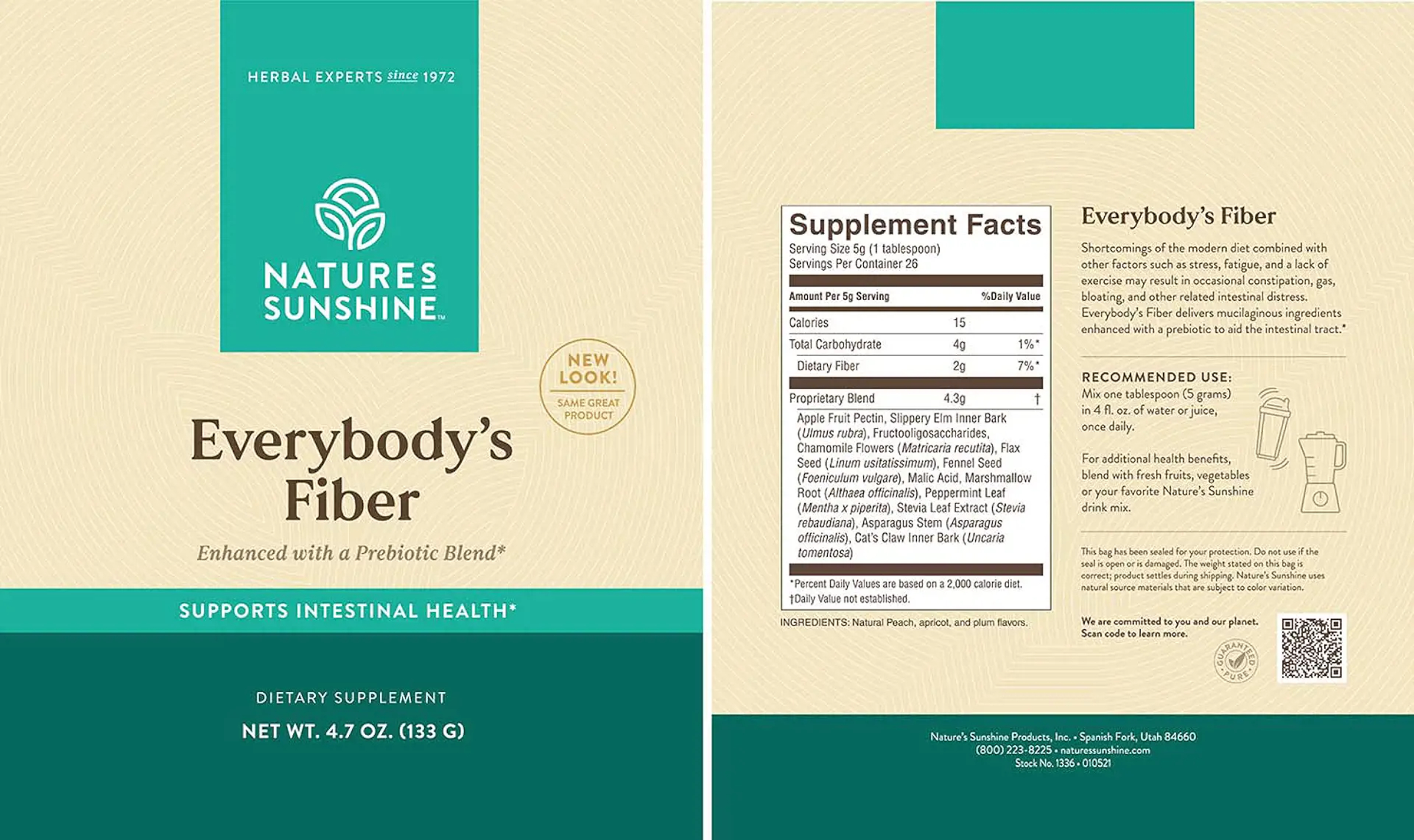 Continued dietary abuse, along with other contributing factors such as stress, fatigue, and lack of exercise may result in occasional constipation, gas, bloating, and other related intestinal distress. Everybody’s Fiber provides 2 grams of dietary fiber per serving and also prebiotics, which have been shown to have a positive effect on colon health.