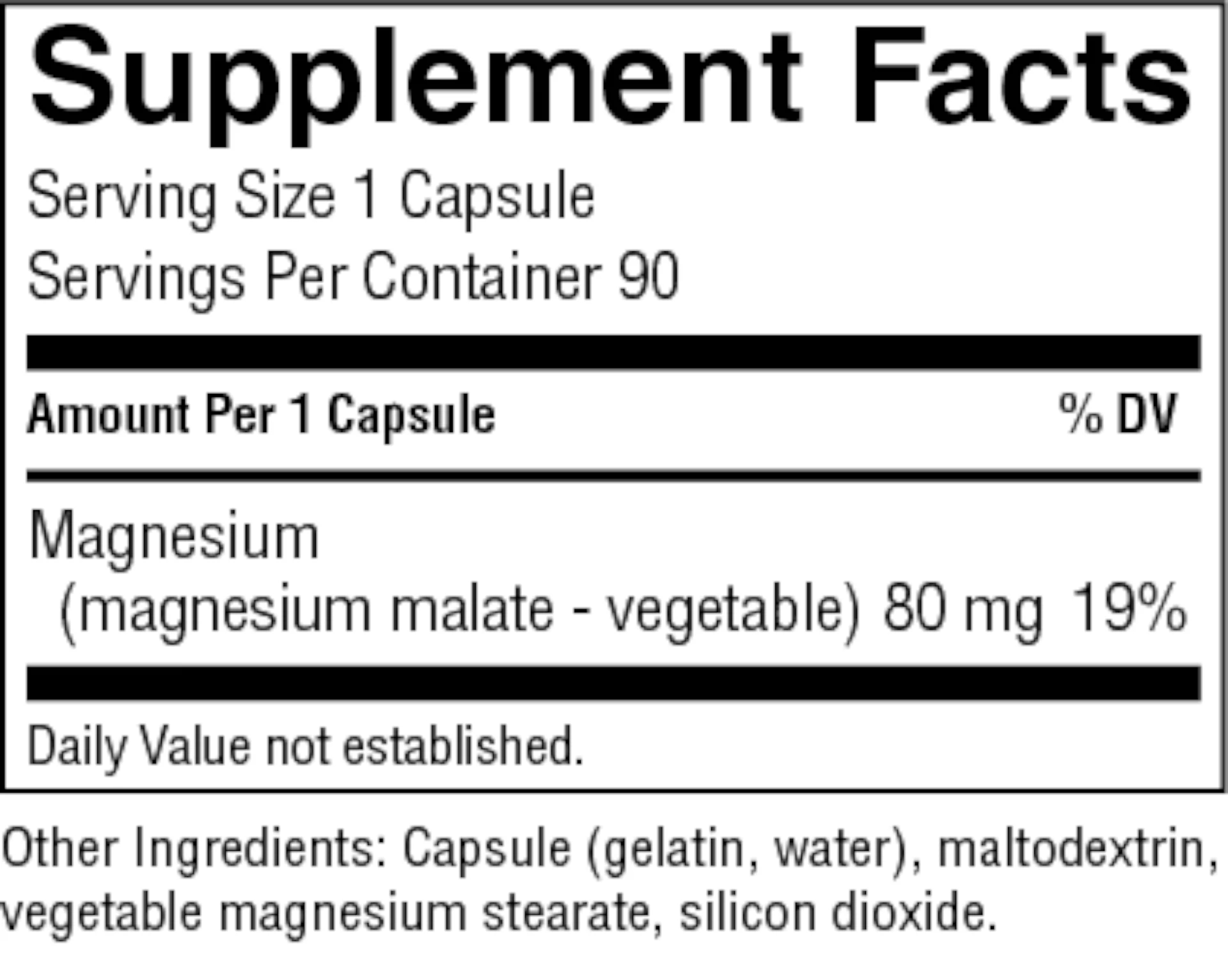 80 mg magnesium (20% Daily Value) and malic acid
