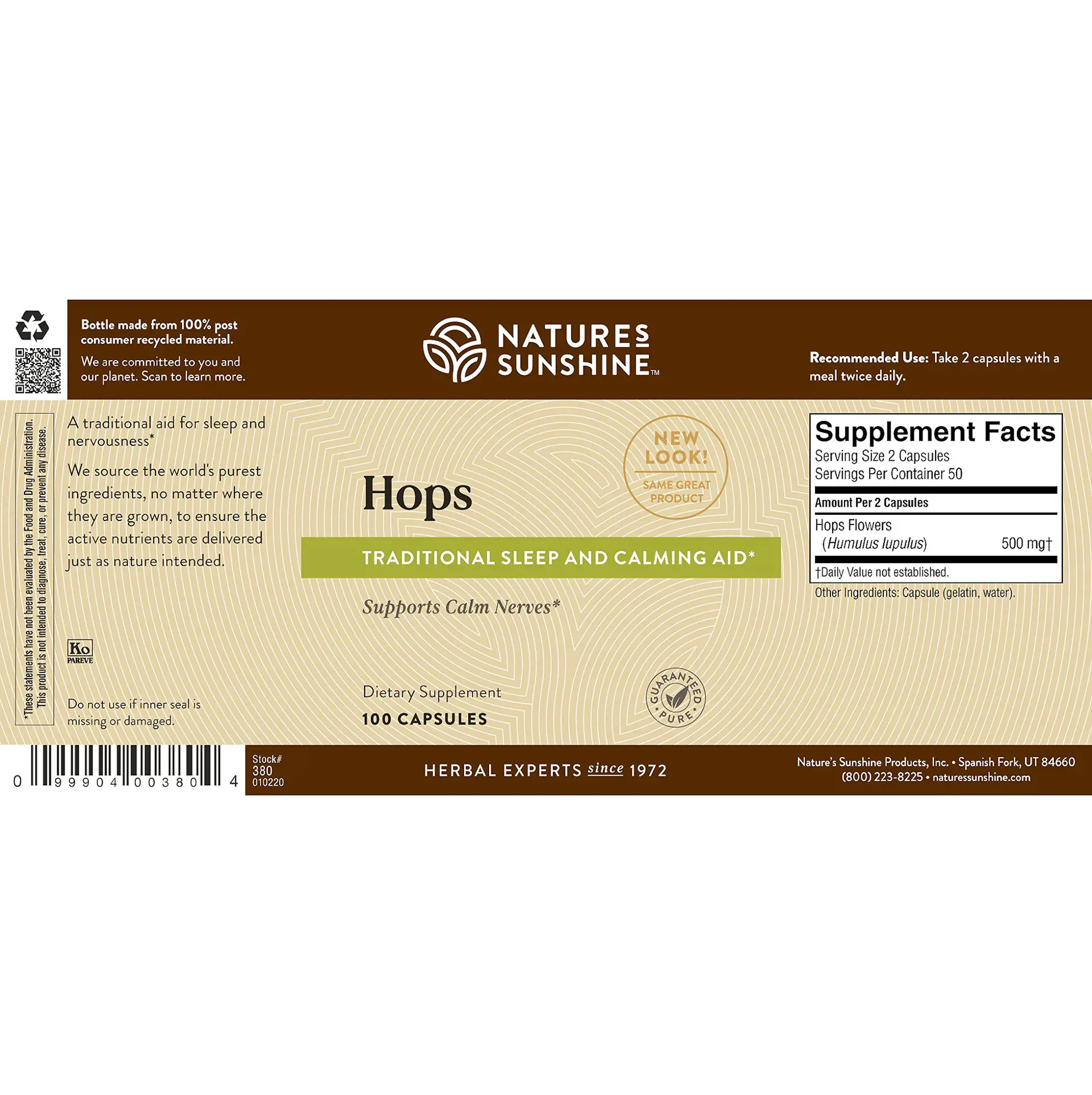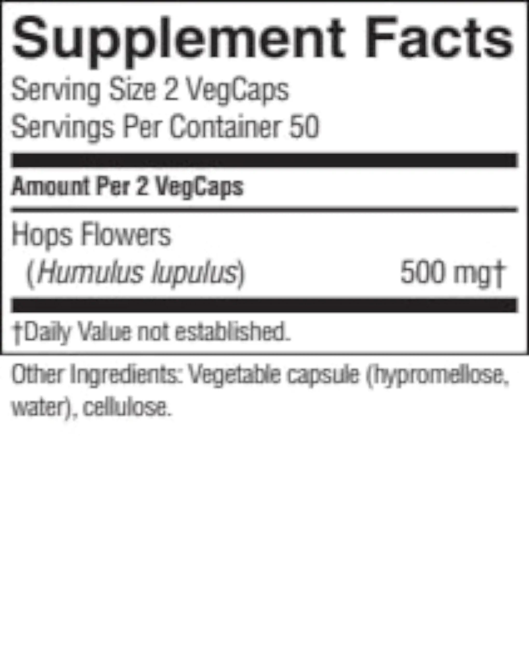 Hops has a calming effect on the nervous system and is a common ingredient in products used to promote restful sleep. It has nervine properties. Hops contains xanthohumol, which possesses antioxidant properties.