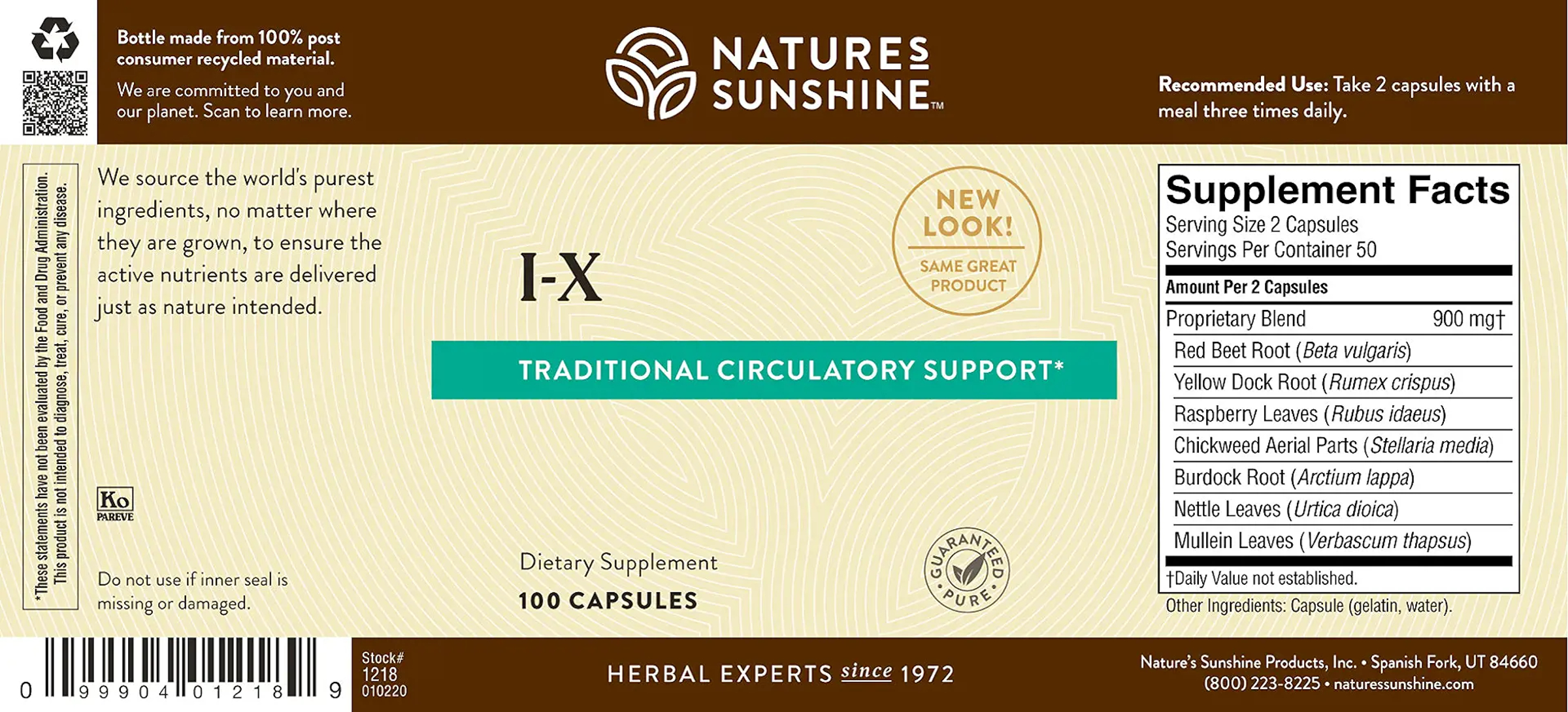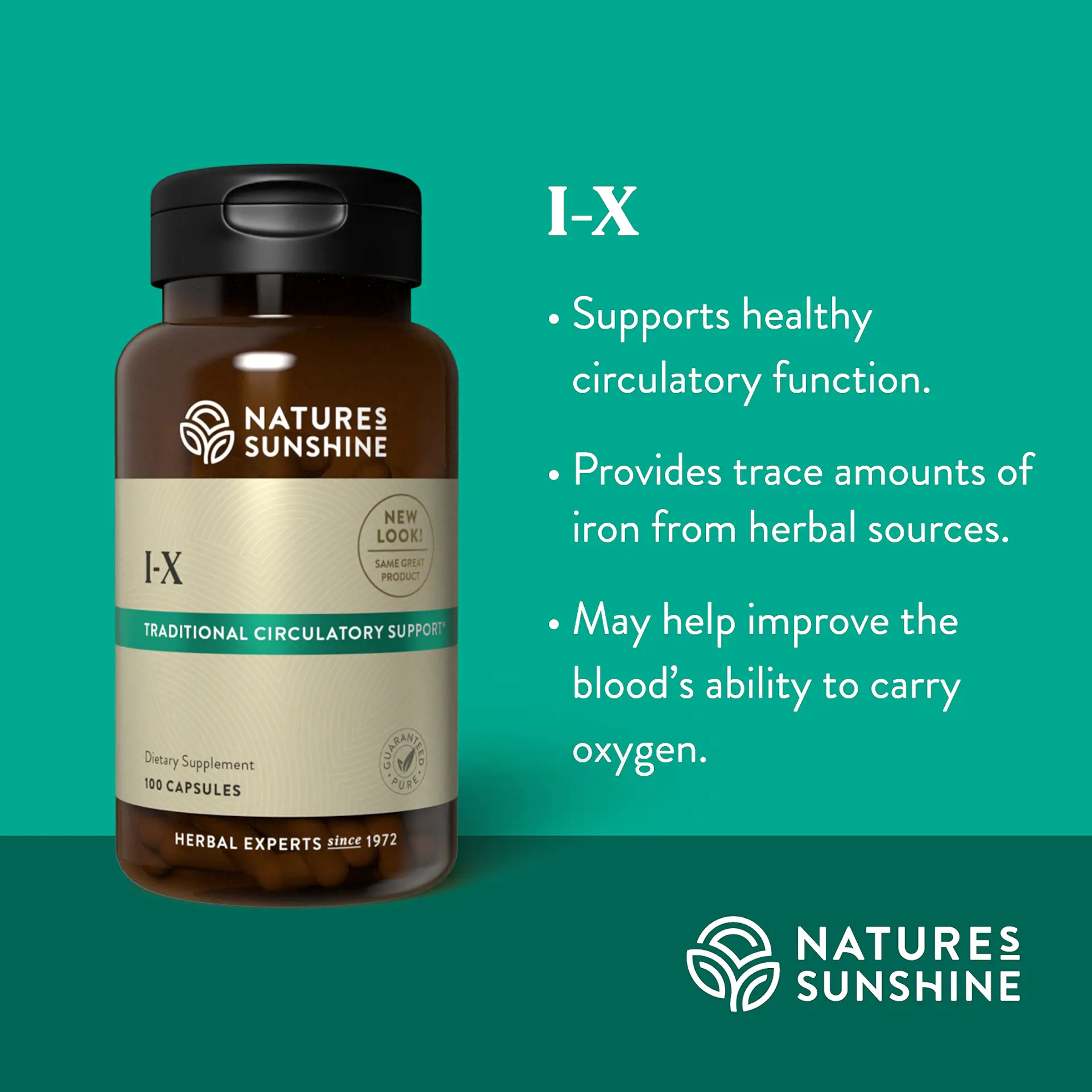 Iron is needed by the body to carry oxygen to the cells where it is combined with glucose for energy production. This combination of herbs provides natural iron with other elements needed to enhance absorption.