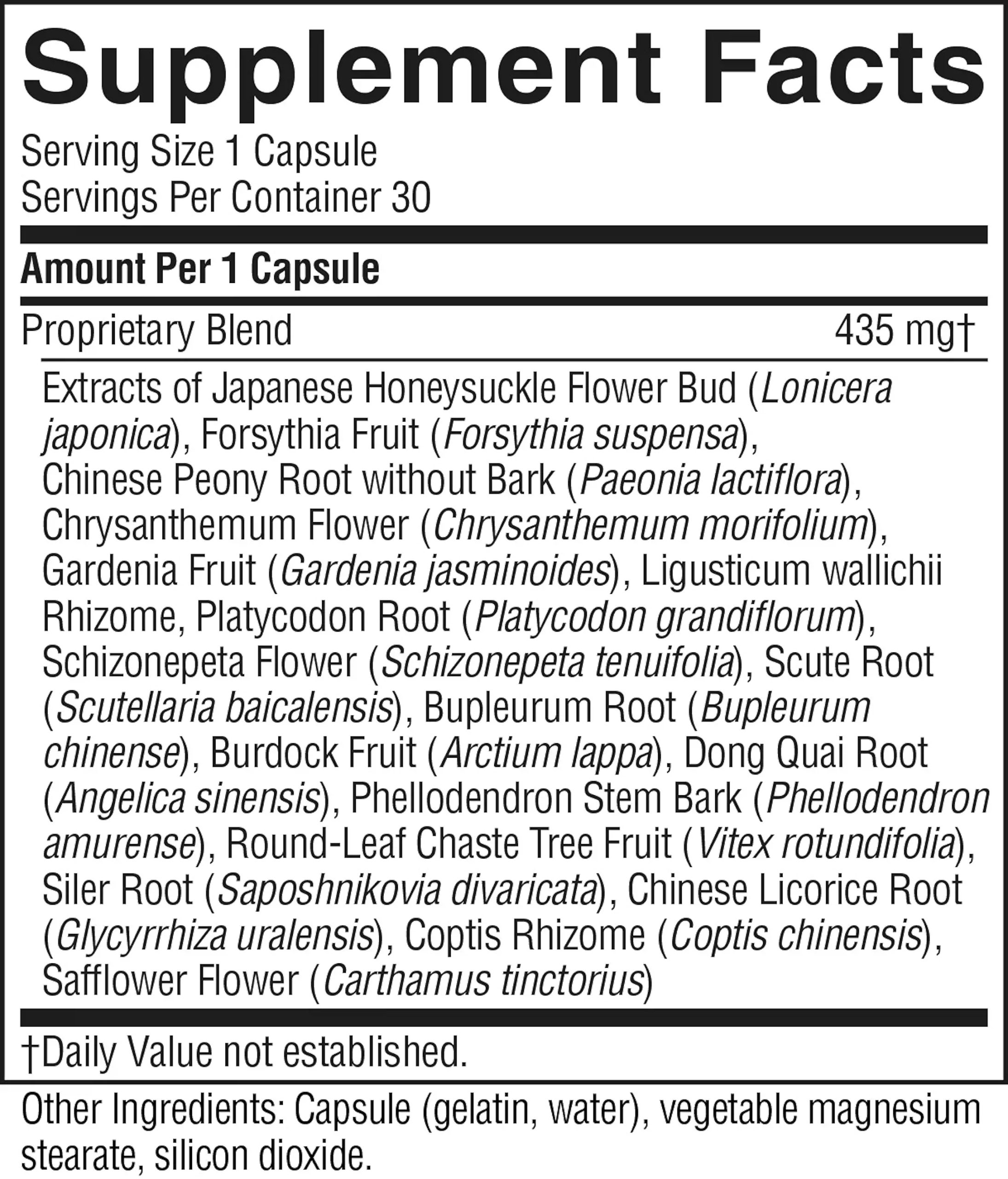 Concentrated extract of lonicera flower bud, forsythia fruit, cnidium rhizome, chrysanthemum flowers, gardenia fruit peony root without bark, platycodon root, schizonepeta flower, scute root, arctium fruit, bupleurum root, phellodendron stem bark, siler root, tang-kuei root, vitex fruit, carthamus flowers, coptis rhizome and licorice root