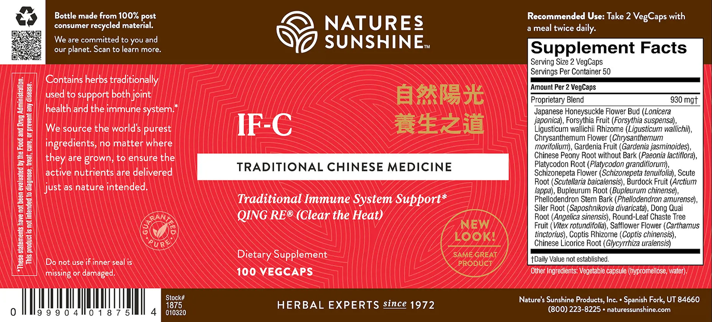 According to Eastern philosophy, life permits us to work with what we have on earth here and now—body and mind—in order to reclaim and maintain the innate energy and spirit that reside within us. Energy and spirit must be awakened, nurtured and balanced in order for life to flourish. TCM philosophy names five distinct energies that permeate the body:Fire, Earth, Metal, Water and Wood. In order to feel your best, these energies must be in balance. IF-C is designed to support healthy immunity and calm a stressed fire constitution. Its Chinese name qing re can be translated as “clear the heat.”
