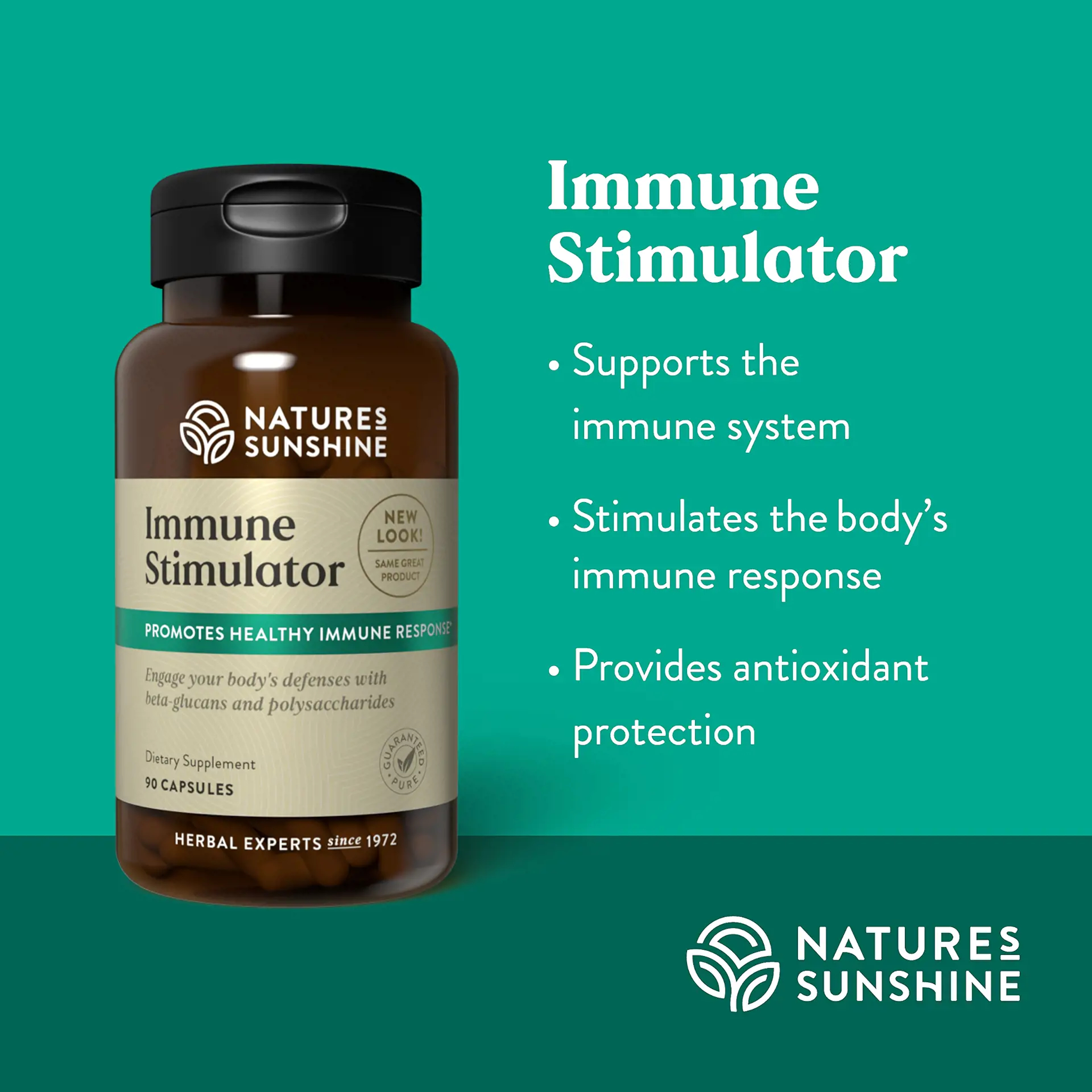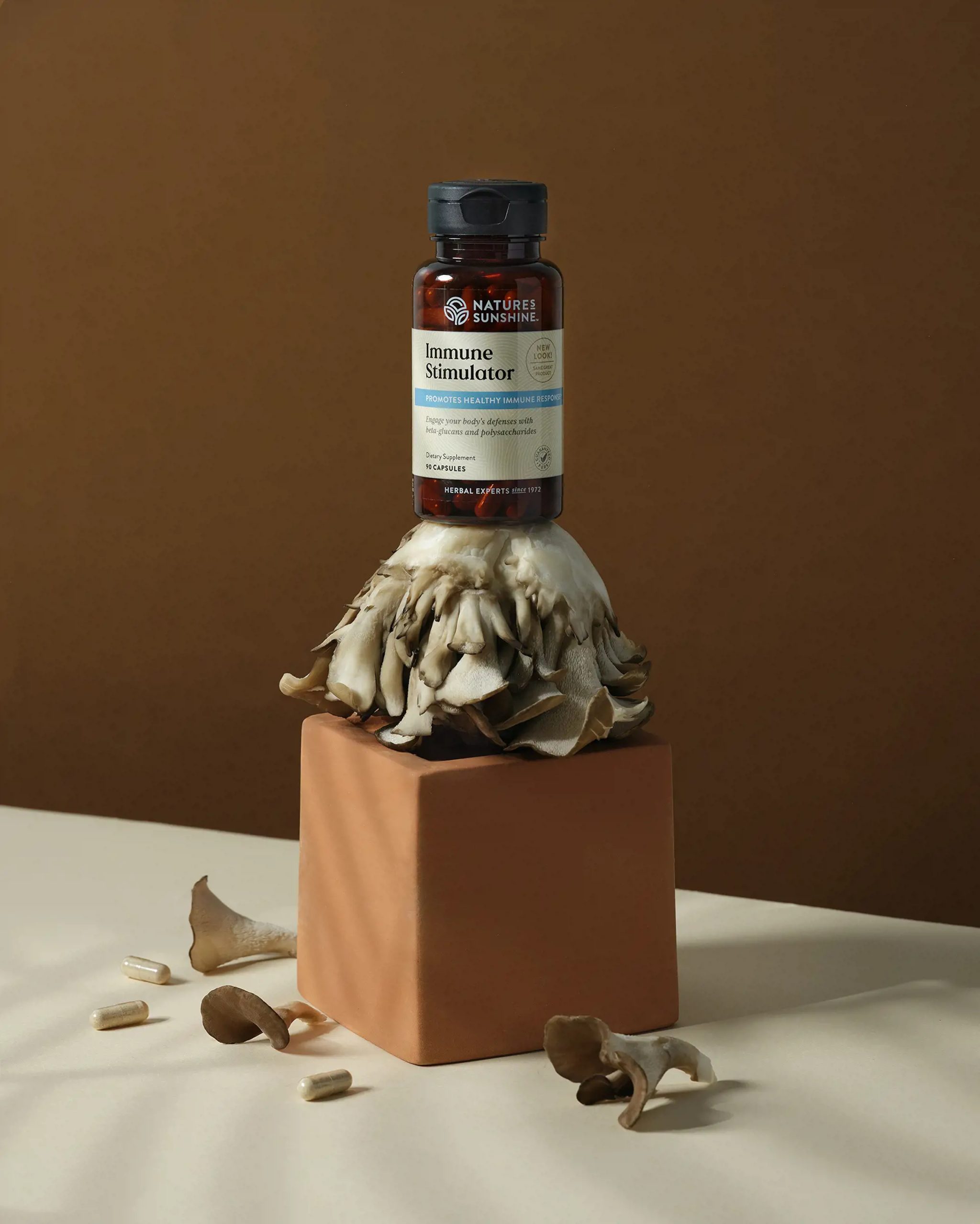 Don’t just support immune function, stimulate it Natures Immune Stimulator strengthen s your immune system response and keep s you going strong . It’s a combination of all- natural beta-glucans and arabinogalactan with a proprietary, immune-boosting blend of colostrum, cordyceps , and reishi and maitake mushrooms .
