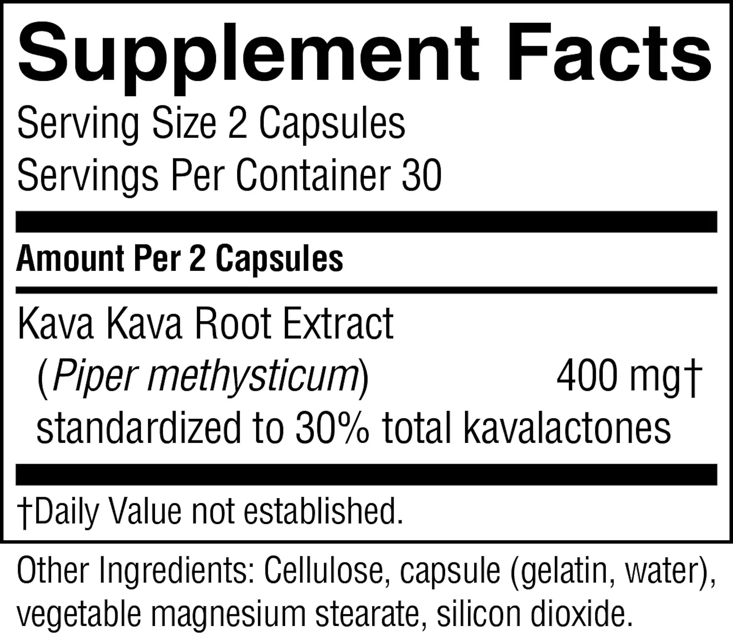 Kava kava root extract, standardized to 30 percent total kavalactones