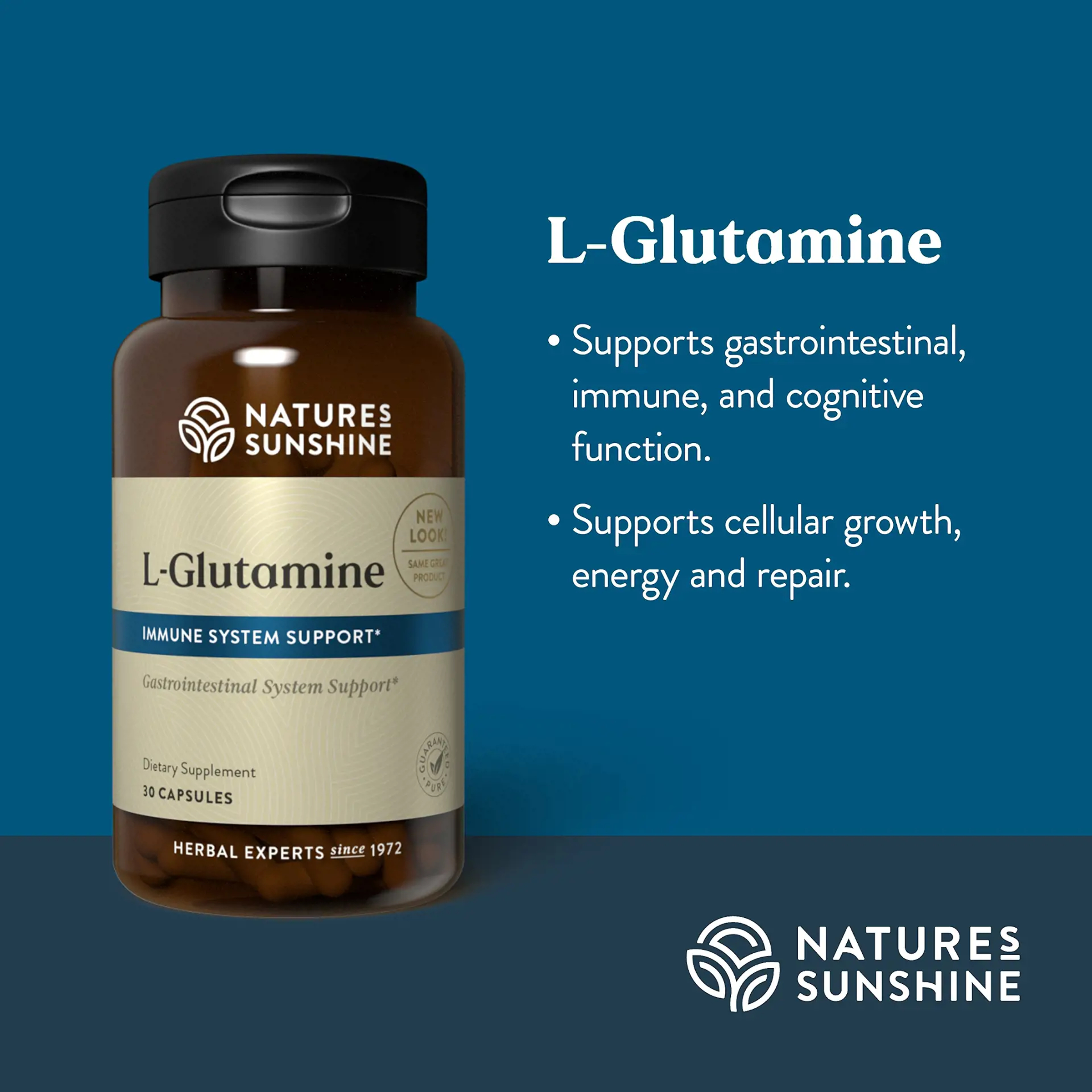 L-glutamine is an amino acid (a protein building block) that is important in supplying the brain with energy. Its main function is to support cellular growth, energy and repair. It also helps with muscle pain (from exercise).