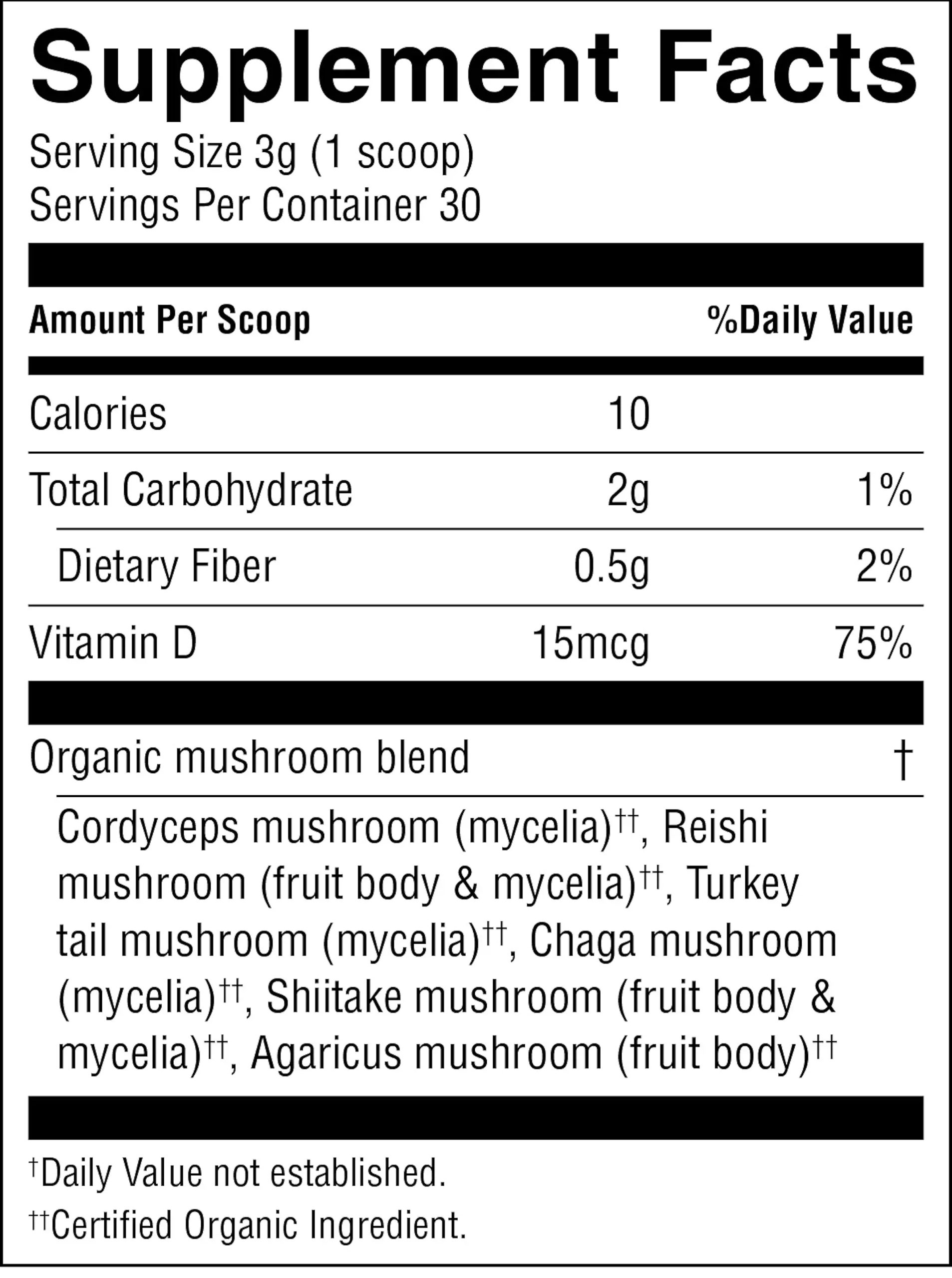 Mix one scoop (3 g) of MY-Immune Defense into your favorite smoothie, juice or recipe for a nourishing boost of organic mushroom goodness! Use daily for best results.