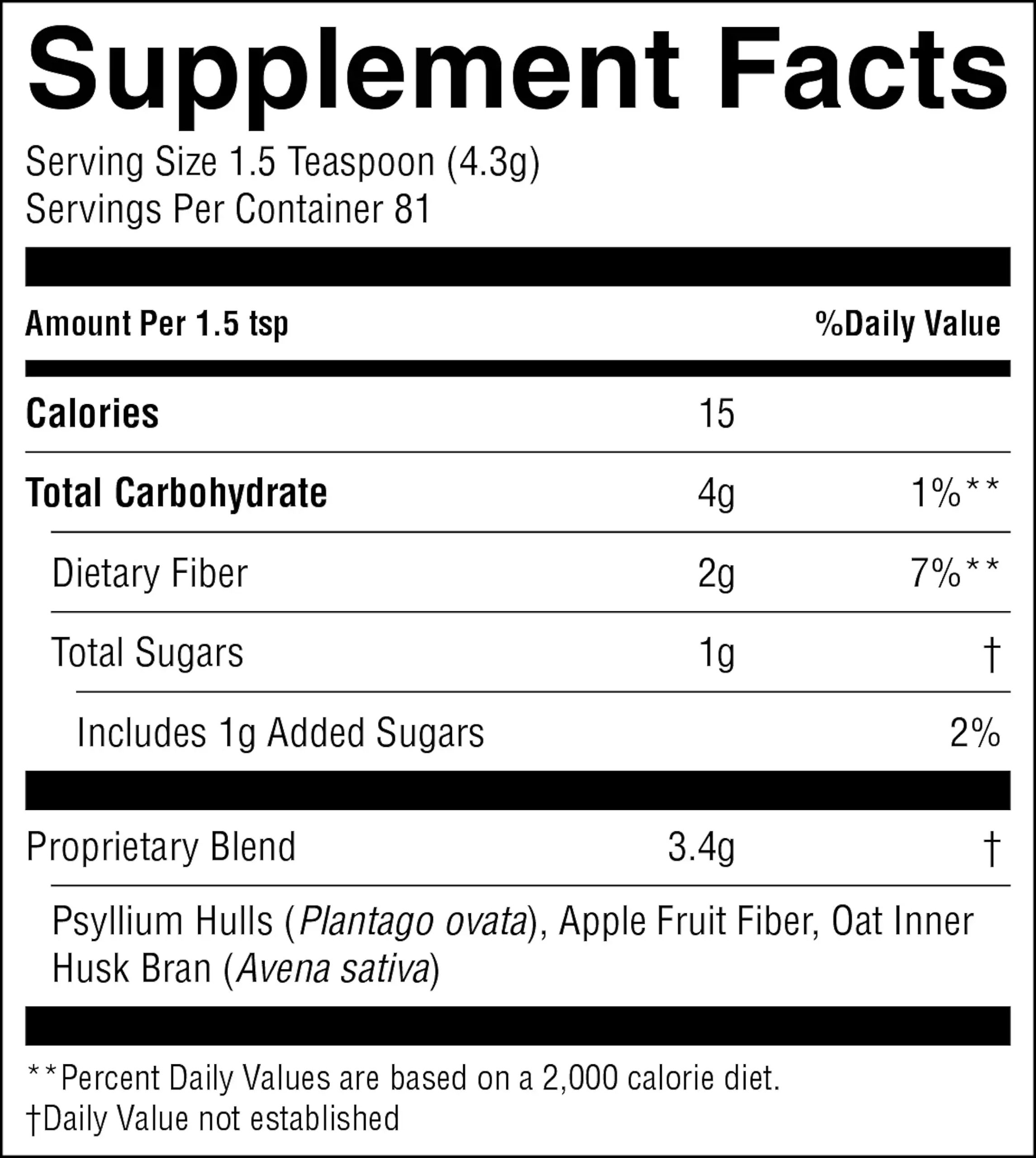 Psyllium seed hulls, apple fruit fiber and oat inner husk bran.