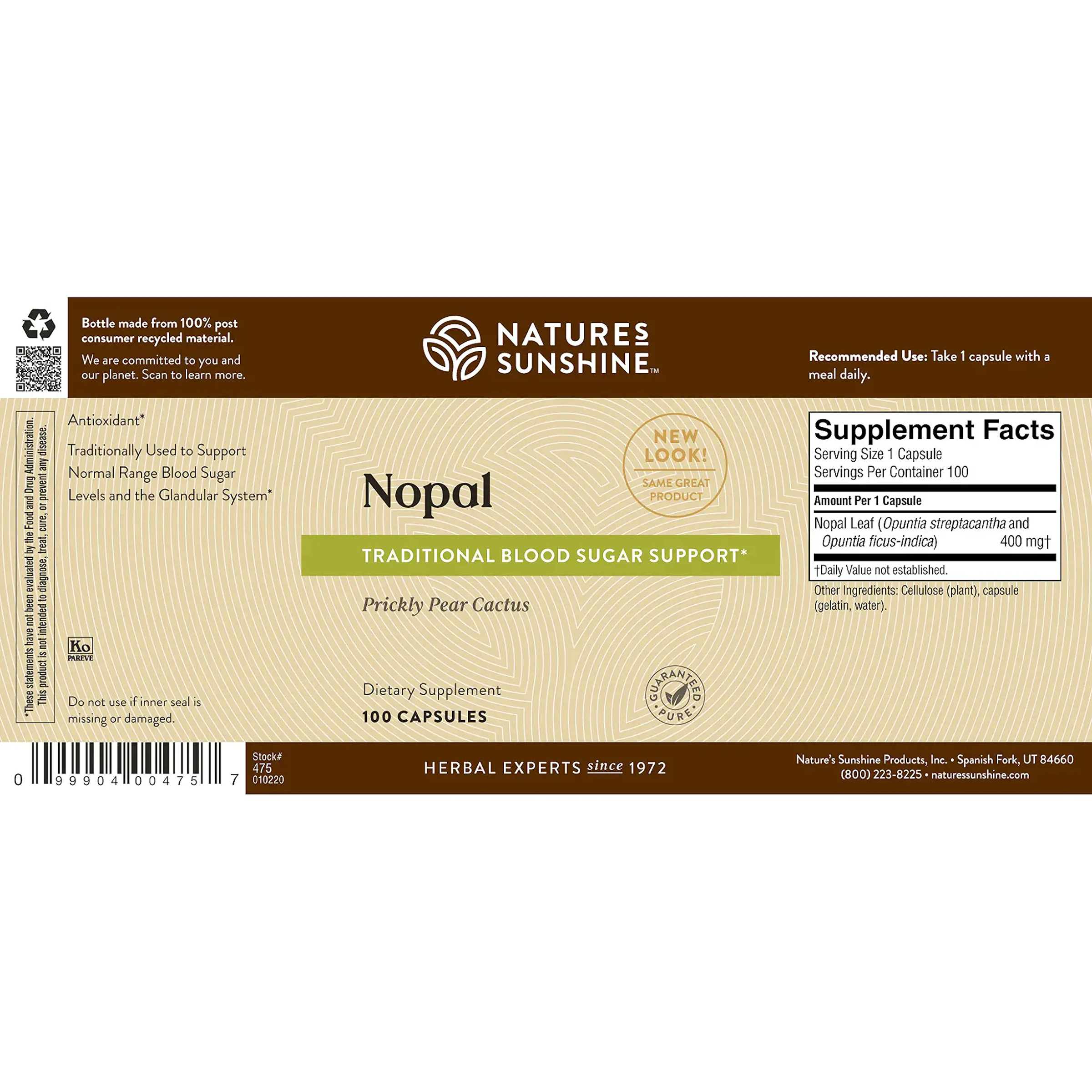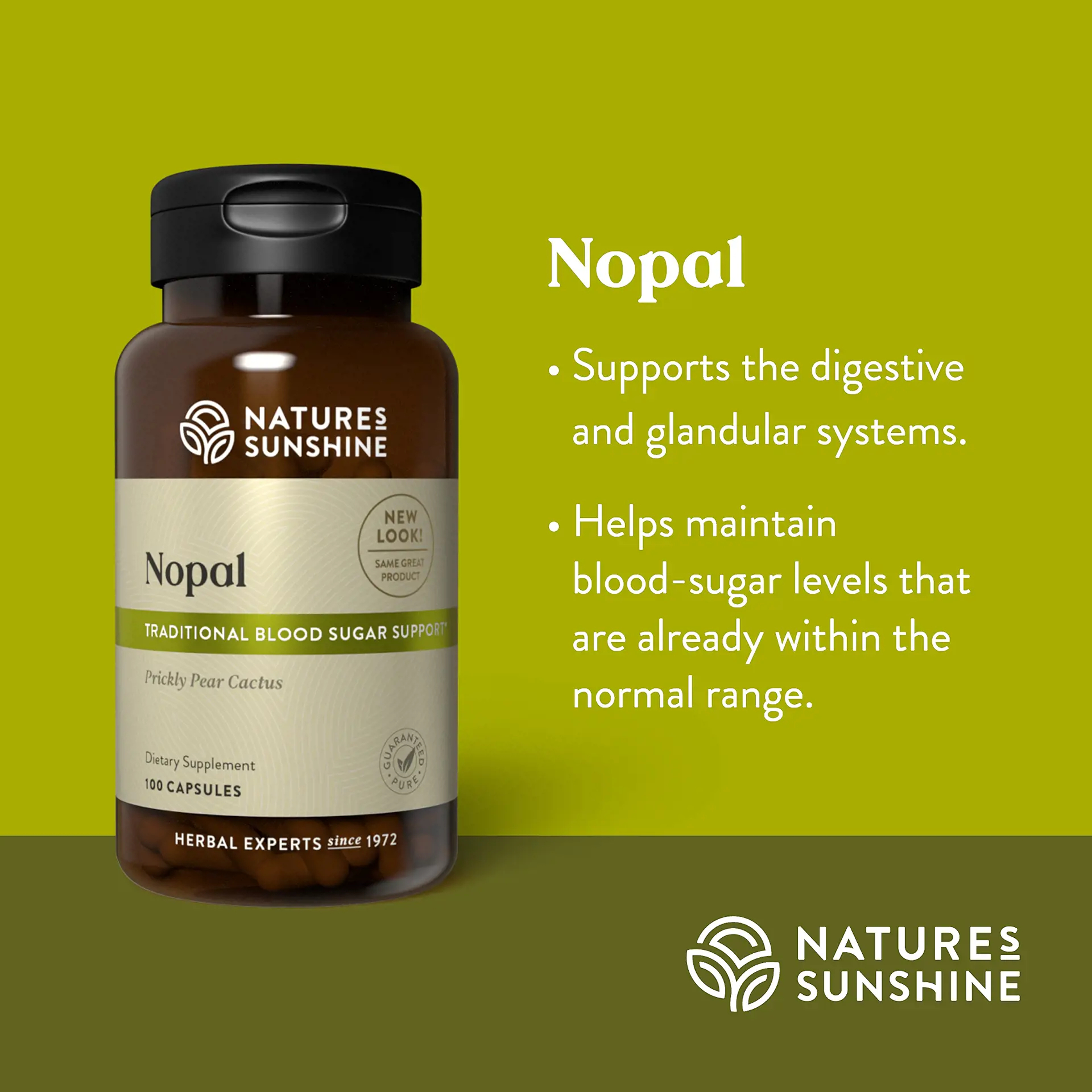 Nopal is a cactus plant commonly known as the prickly pear. It contains pectins and mucilage that are beneficial to the digestive system. It is a low-glycemic-index food that is commonly consumed for its nutrient content. Several human studies show that nopal provides nutritional support for already normal range blood sugar and blood lipid levels.