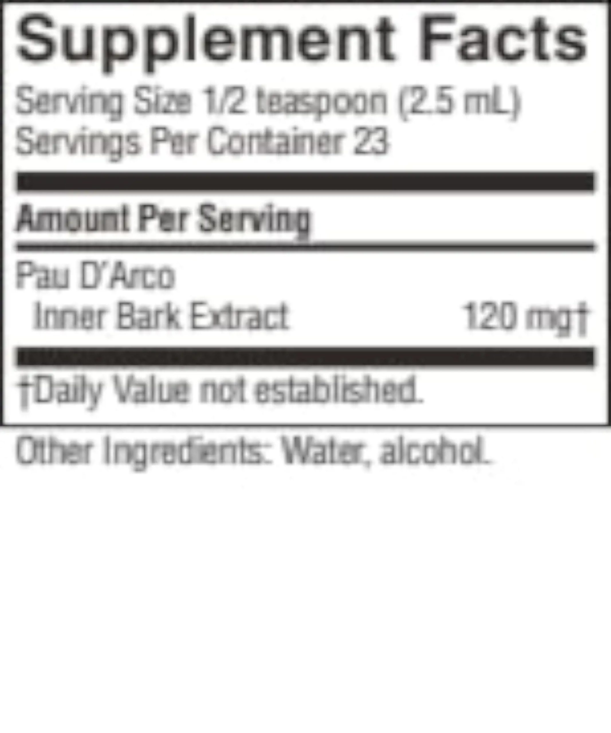 Pau d’arco inner bark. Liquid herb contains extract of inner bark.