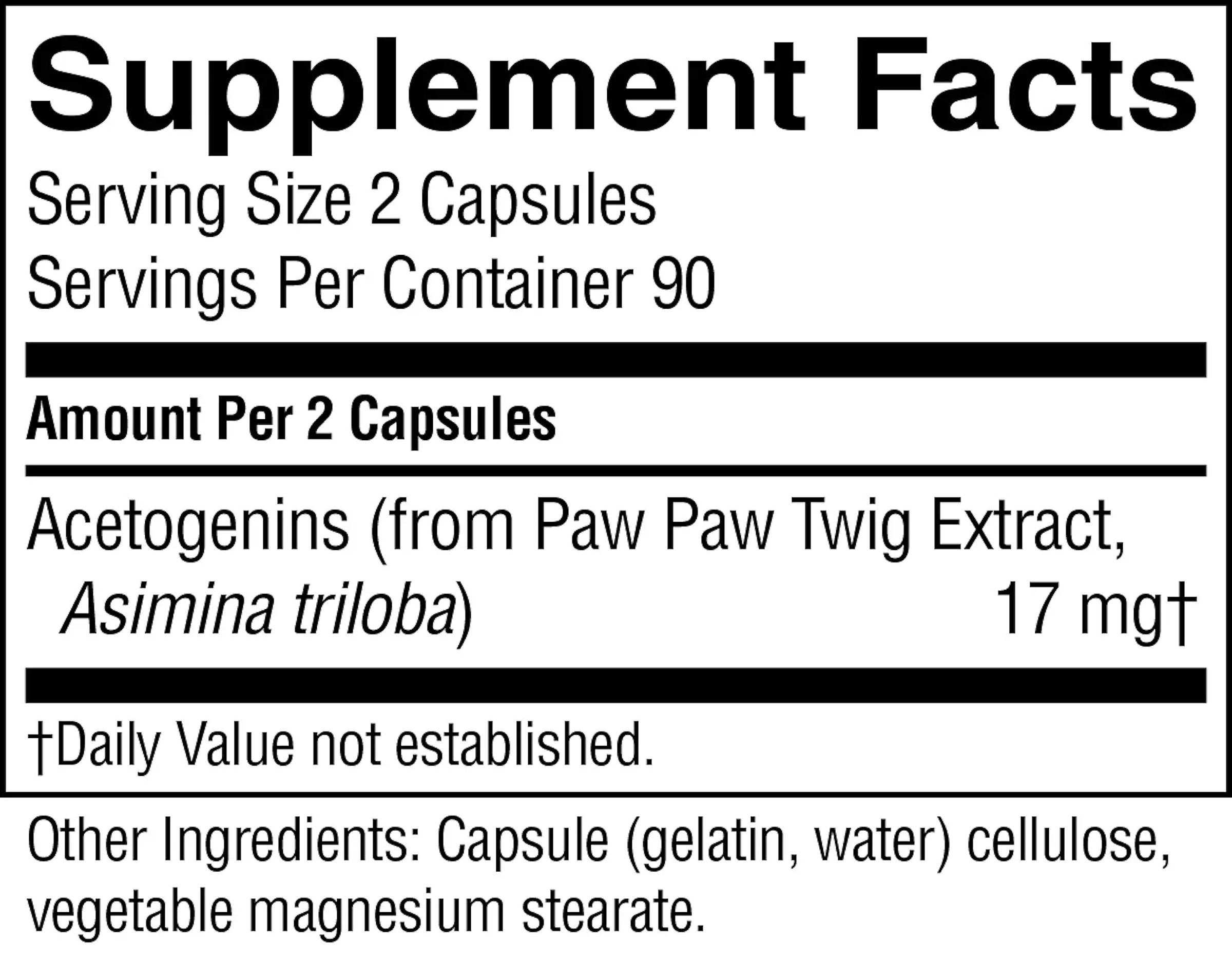 Paw Paw provides unique cellular support. Found in the twigs of the Paw Paw tree, acetogenins are uniquely active constituents that help support the body’s antioxidant system and, in turn, contribute to overall health. Our non-GMO Paw Paw was thoroughly researched to provide maximum health benefits.
