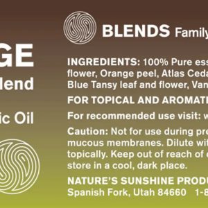 Essential oils may be used aromatically or topically in a variety of ways including diffusers, massage, compresses, baths, scrubs, lotions and sprays. Essential oils should be diluted with Nature’s Sunshine Massage Oil or Carrier Oil before applying topically.
