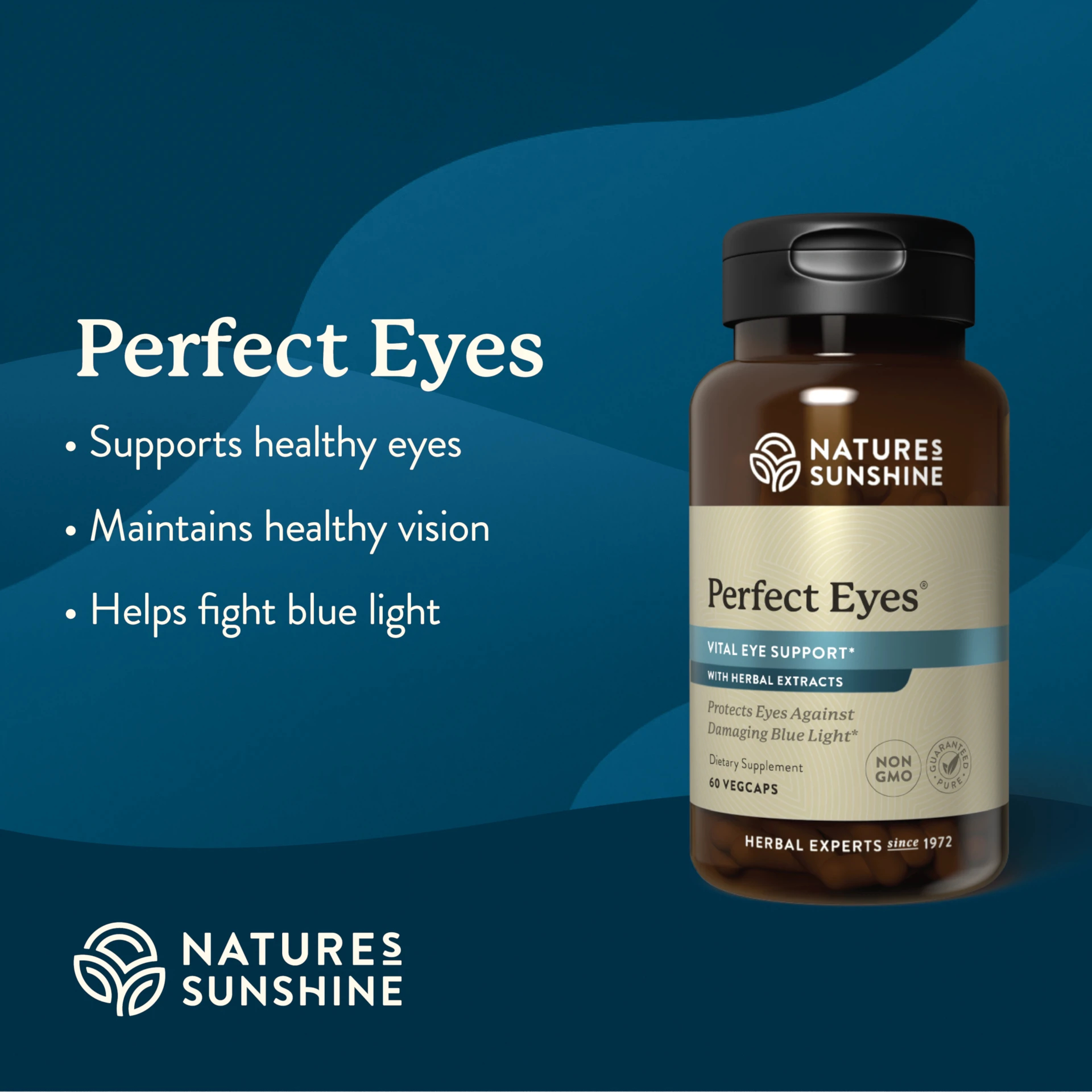 With phones, tablets, TVs and computers, you put your eyes through a lot. Its time you showed them some love. Support healthy eye function and protect your eyes from damage with powerful antioxidants in Perfect Eyes. Lutein, zeaxanthin, beta-carotene,turmeric and other nutrients help your eyes and vision.