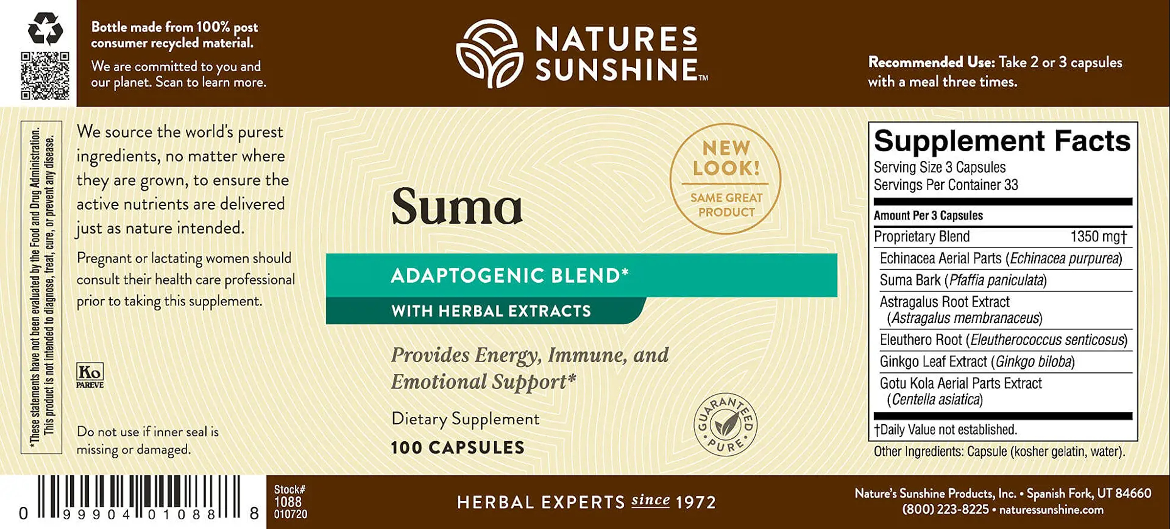 SUMA Combination supplies nutrients that support the body’s regenerative functions. It is a blend of six powerful adaptogenic herbs that bolster the immune system and provide energy and emotional support. Suma root is referred to as para todo in South America, meaning “for everything.” Suma is not a true ginseng, but it shares many of ginseng’s properties. Astragalus root is a Chinese herb that also shares many properties of ginseng and is known as an energy-booster.