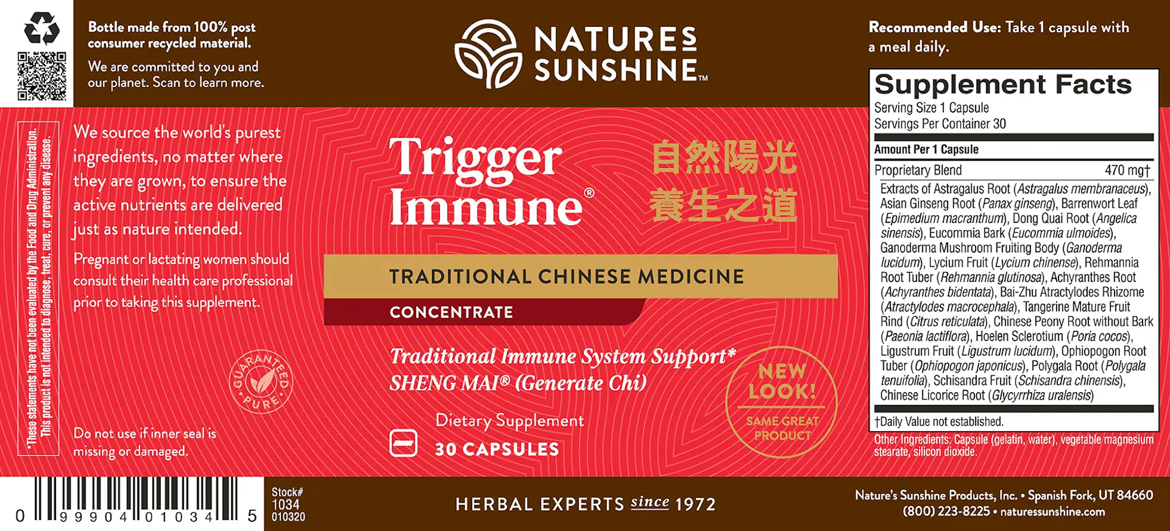 Energy is the vital force that activates every function and drives every process in the human body, both voluntarily and involuntary. Nurturing your chi, through supplementation and good lifestyle practices, encourages your elements to be in balance while helping you feel energetic, content and refreshed. Your chi is the driving force of optimal health and wellness. To nourish your chi, try Trigger Immune® (-). Trigger Immune® TCM Concentrate is a combination of highly concentrated herbs designed to support natural immunity. According to Traditional Chinese Medicine, this formula is designed to strengthen a weakened energy constitution. Its Chinese name sheng mai can be translated to mean “generate the pulse.”