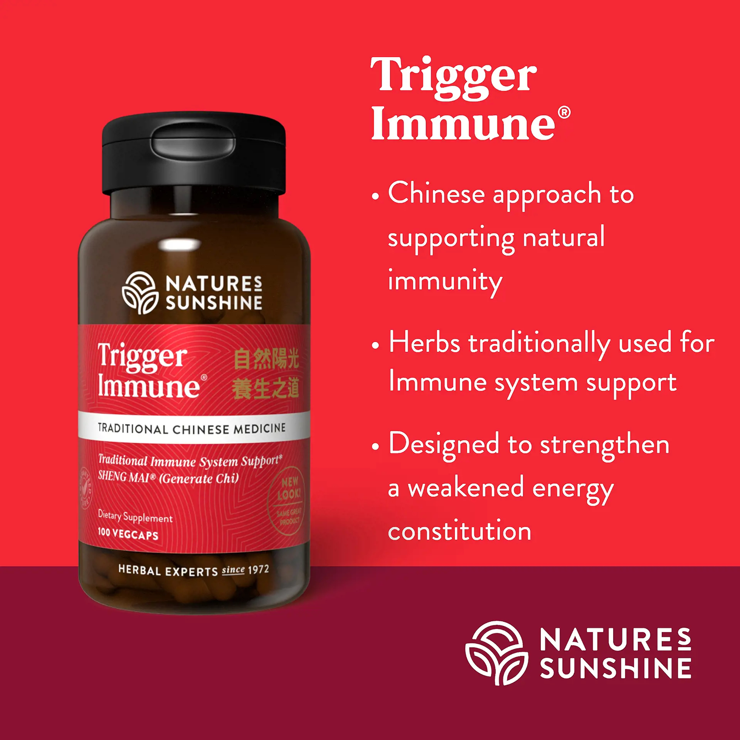 Energy is the vital force that activates every function and drives every process in the human body, both voluntary and involuntary. Nurturing your chi, through supplementation and good lifestyle practices, encourages your elements to be in balance while helping you feel energetic, content and refreshed. Your chi is the driving force of optimal health and wellness. To nourish your chi, try Trigger Immune® (-). Trigger Immune® is a combination of herbs designed to support natural immunity. According to Traditional Chinese Medicine, this formula is designed to strengthen a weakened energy constitution. Its Chinese name sheng mai can be translated to mean “generate chi.”
