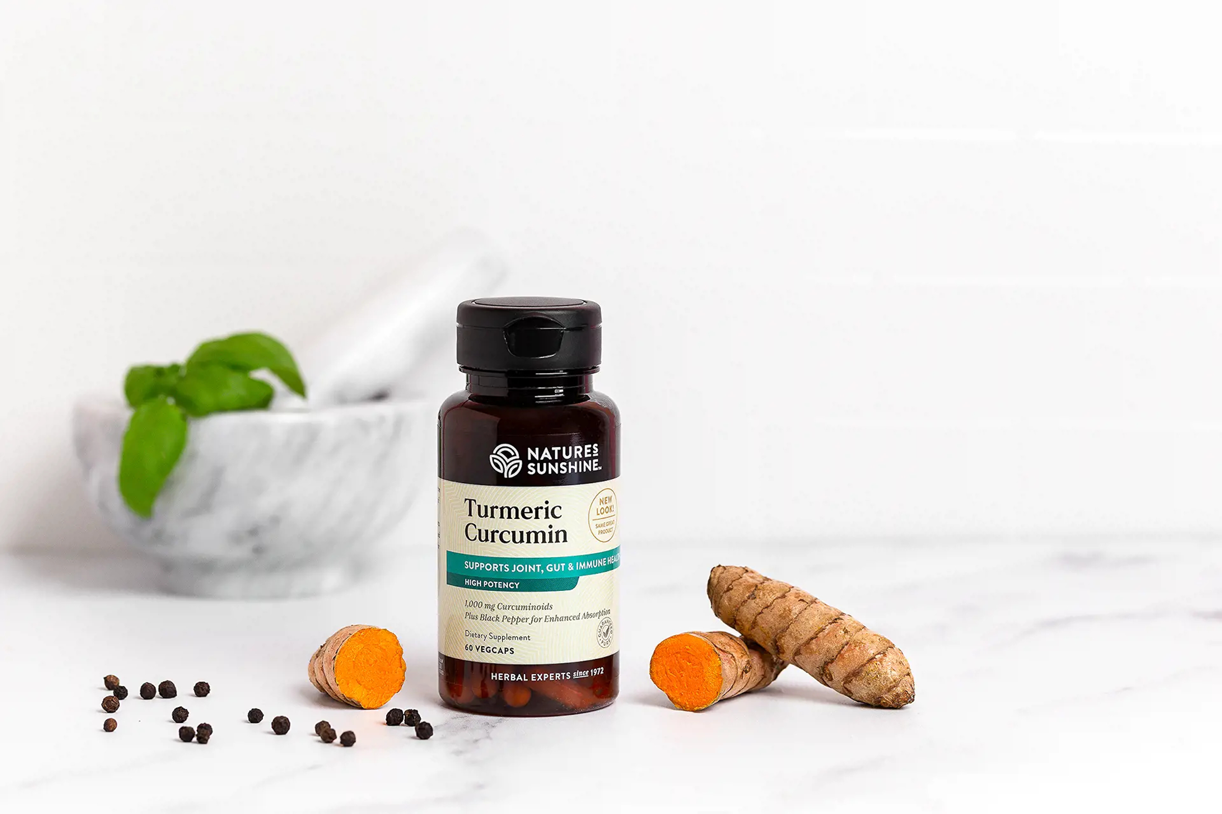 Nature’s Sunshine a leader in herbal tradition spreads the sunshine by bringing a superior herb to your home. Turmeric Curcumin harnesses the power of turmeric extract to promote a healthy inflammatory response to support joint, skin, brain and gut health as well as immune system function. One serving of Turmeric Curcumin is equivalent to 32,000 mg of whole root turmeric. Nature’s Sunshine Turmeric Curcumin is clinically studied and proven to deliver superior absorption and effectiveness. As an Herbal Leader Nature’s Sunshine flipped the script on the Turmeric and Curcumin product offering. While most competing products deliver high levels of Turmeric and low levels of turmeric extract, Nature’s Sunshine delivers Turmeric root and HIGHER levels of the antioxidant-rich turmeric extract. Curcuminoids is the primary active ingredients obtained from the rhizomes of the yellow curry spice turmeric (Curcuma longa L). Curcumin has been safely used for centuries in Indian Ayurvedic medicine. A potent antioxidant, curcumin supports a healthy inflammatory response and may help support joint, skin, brain and gut health as well as immune system function. As an added benefit we enhanced Turmeric Curcumin with Black pepper extract—a black pepper fruit extract from the Piper nigrum species, black pepper has been added to increase curcumin’s absorption. Black pepper may also aid with some occasional digestive discomfort and has antioxidant properties.