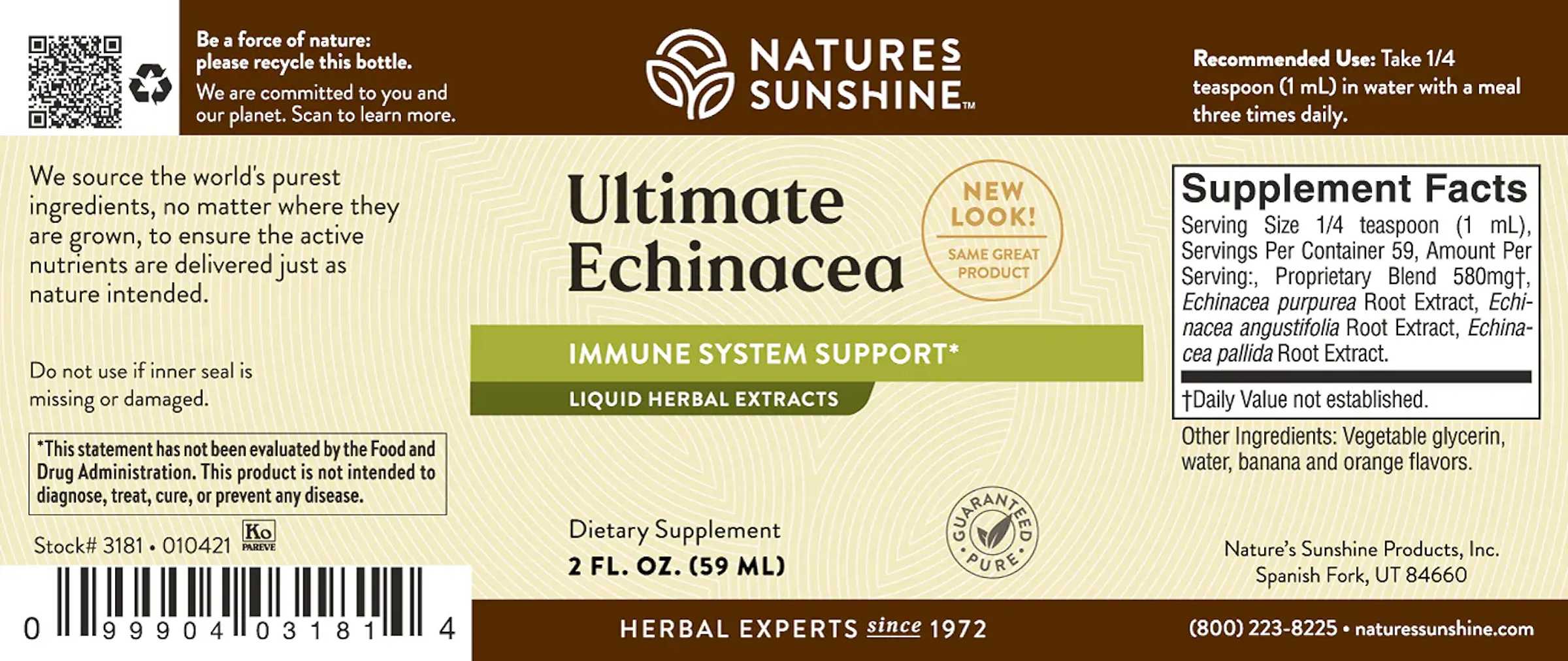 This unique formula combines the synergistic benefits of the three most popular echinacea species into a powerful immune system product. It contains echinacosides, glycoproteins, isobutylamides and polysaccharides found selectively in each species. Studies suggest that echinacea contains active substances that enhance the activity of the immune system, have antioxidant activity.