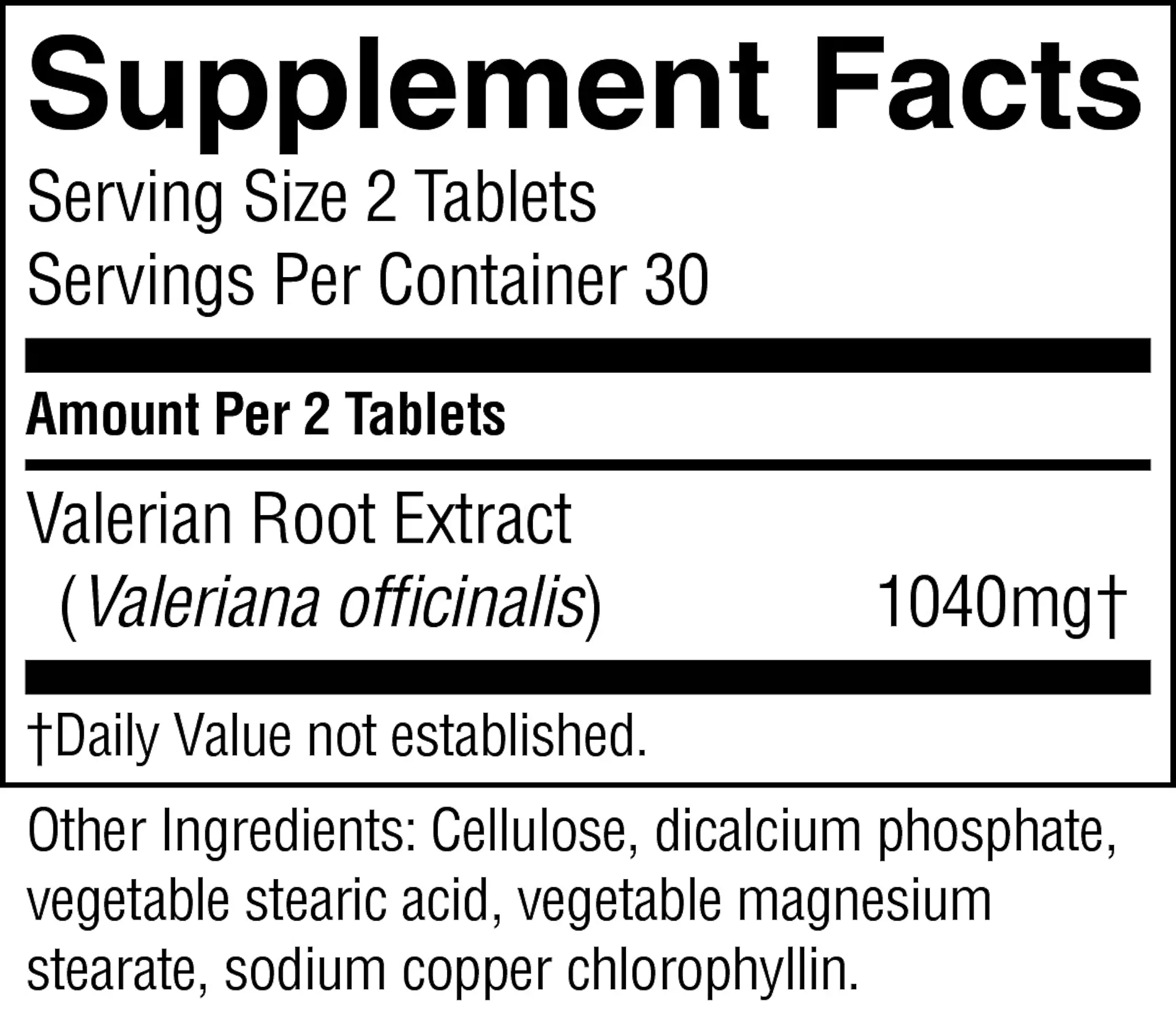 Valerian root extract, concentrated and standardized to 0.8% valerenic acids