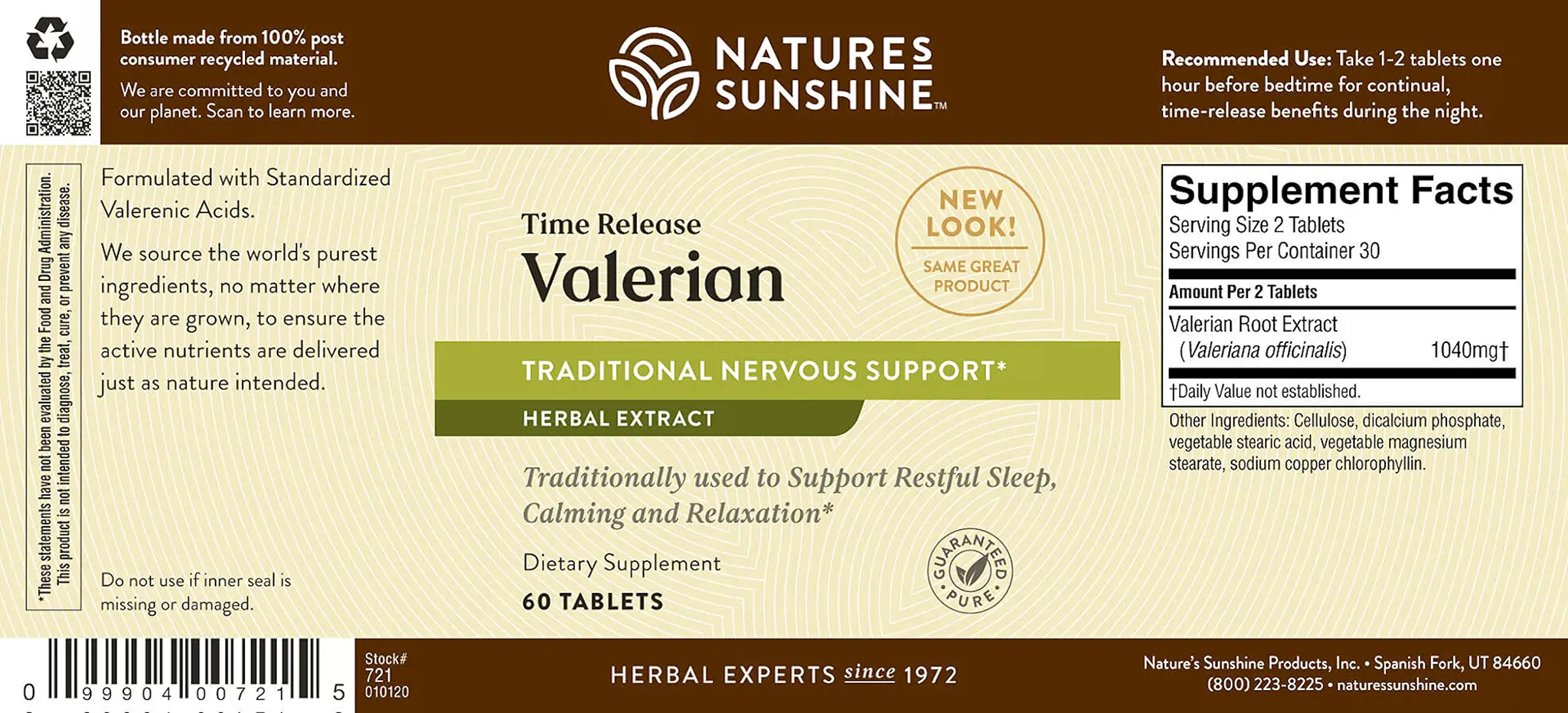 Valerian has been used for occasional sleeplessness for over 1,000 years. Its ability to help support the nervous system, promote feelings of calm, and support restful sleep are known to millions the world over. Valerian is known not to cause morning grogginess and is non-addictive.