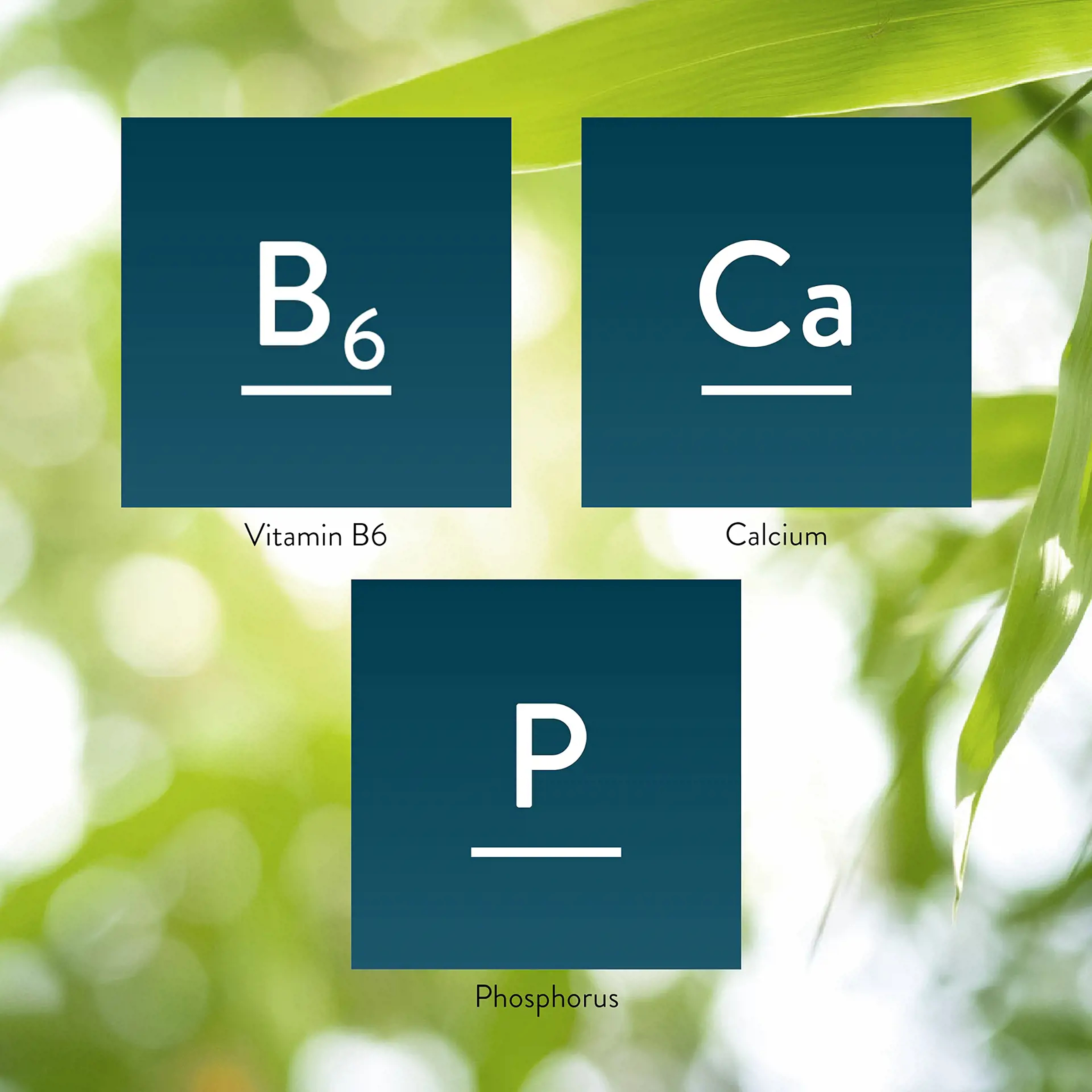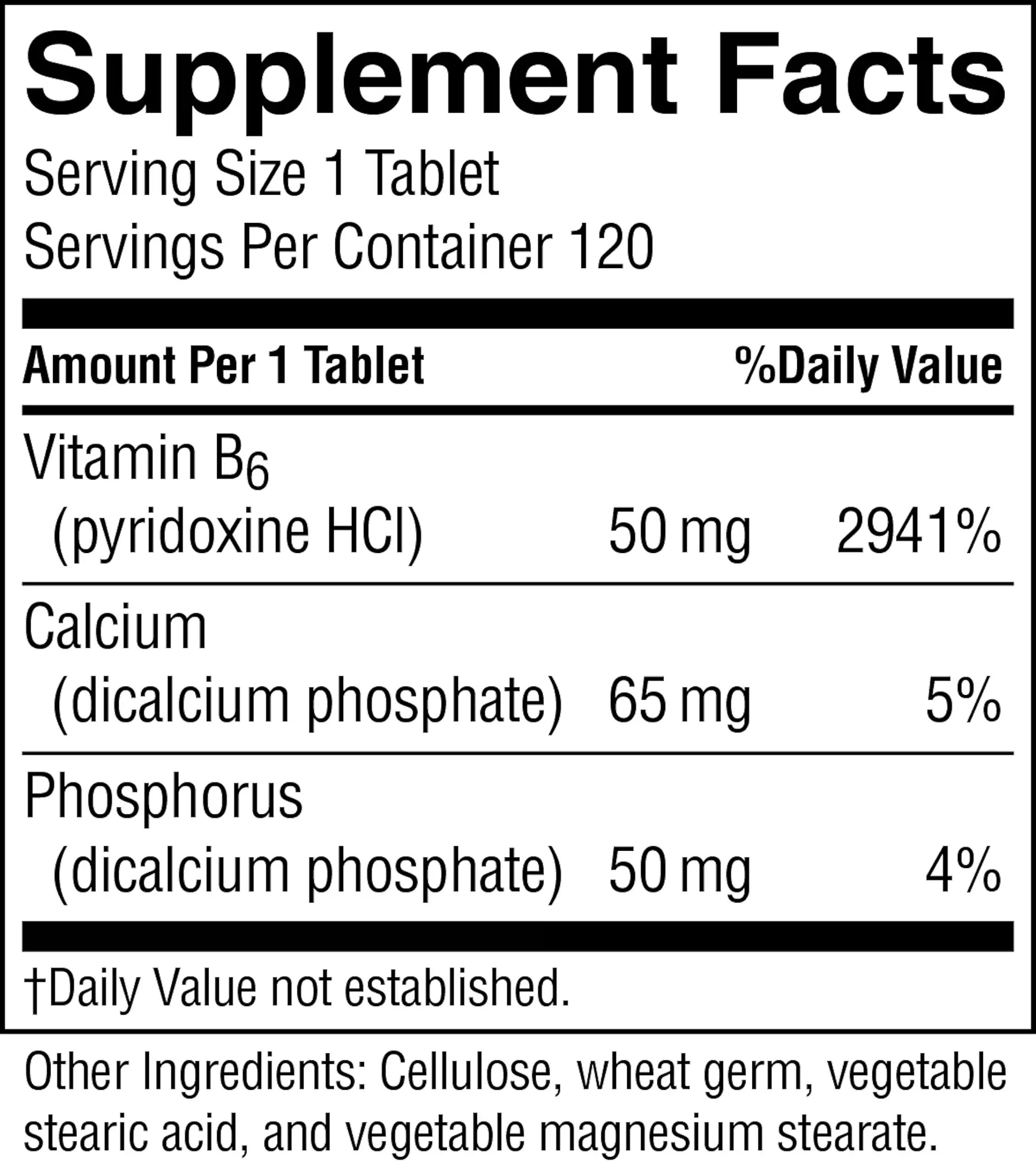 50 mg Vitamin B6 (2,500% of Daily Value), calcium and phosphorus.