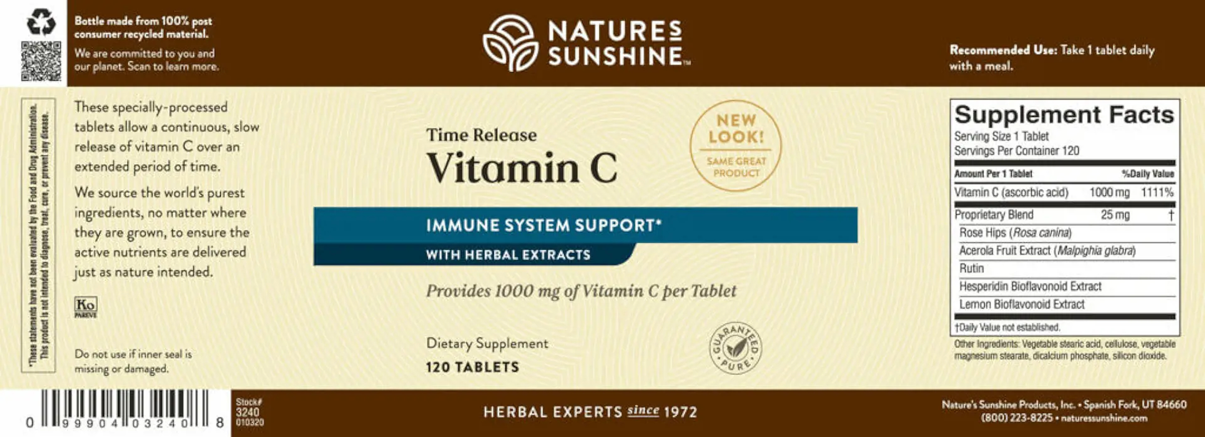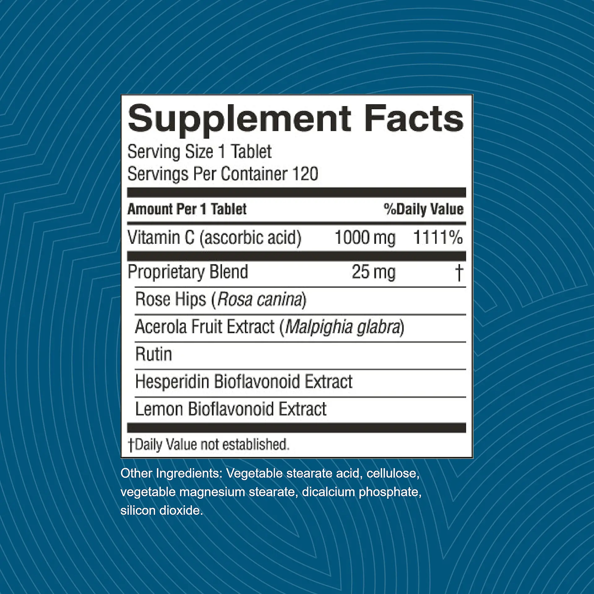 1,000 mg Vitamin C per tablet, lemon bioflavonoid extract, hesperidin, rutin, acerola fruit extract and rose hips extract.