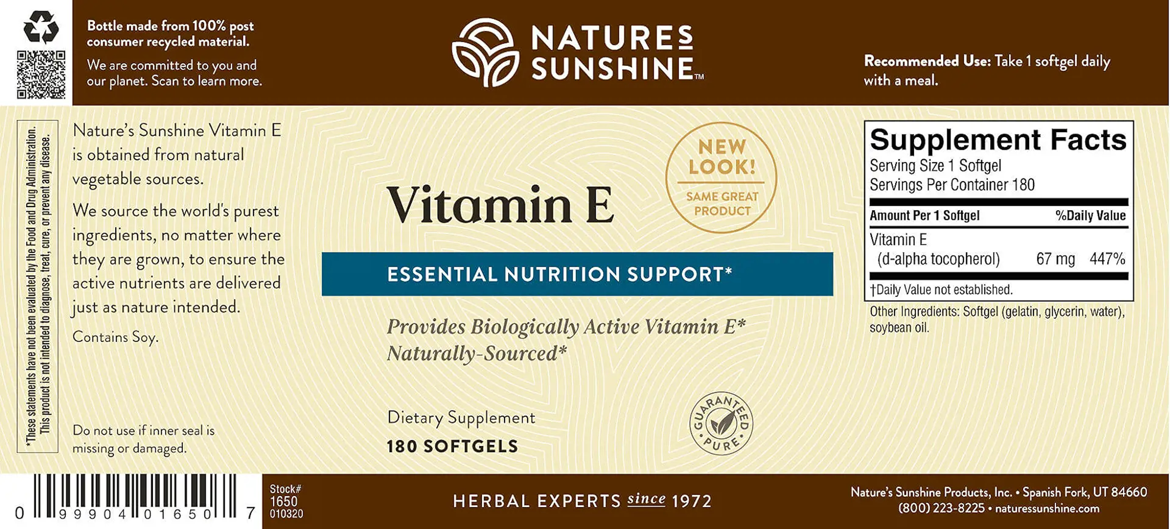 67mg Vitamin E (447% of Daily Value) per capsule and cold-pressed soybean oil.
